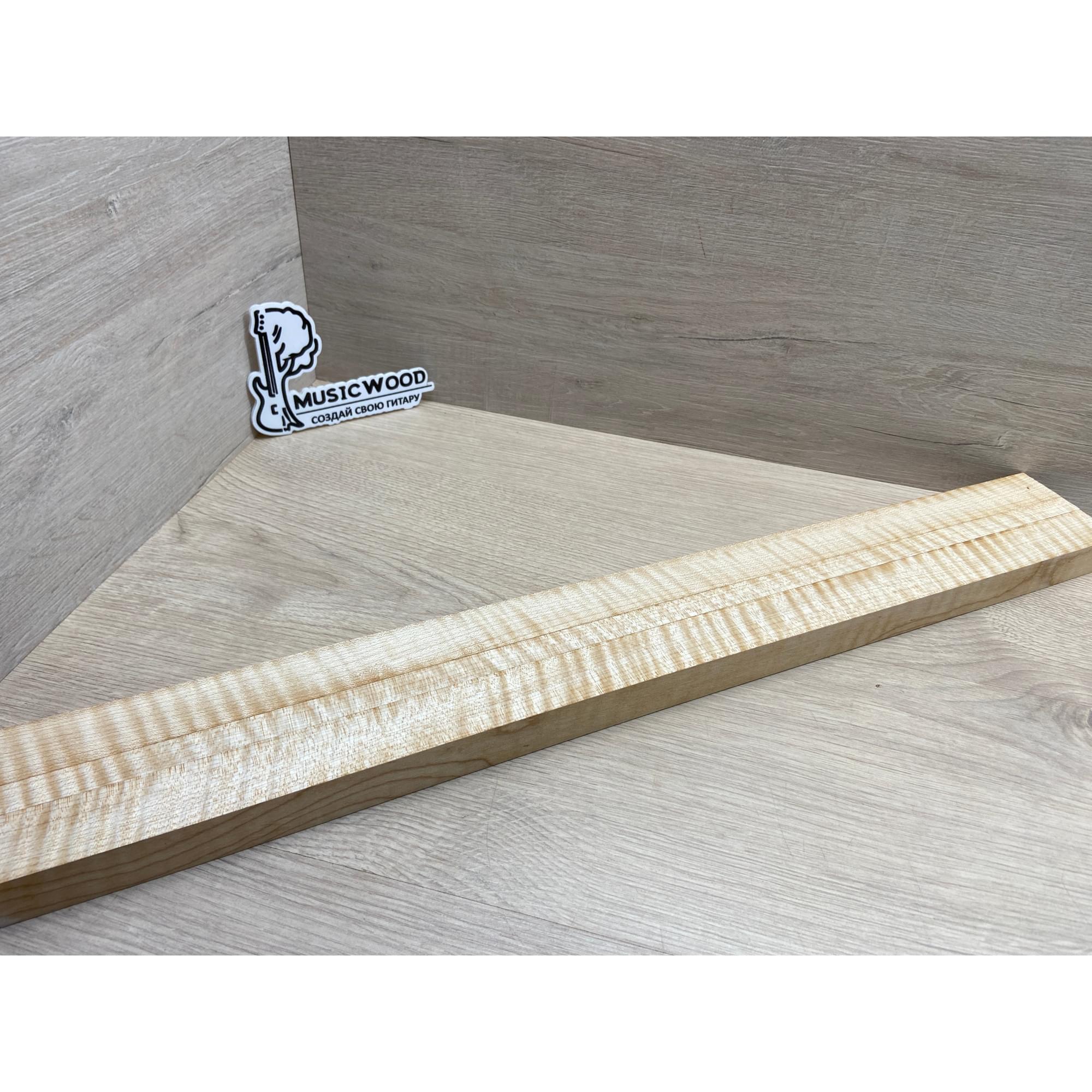 Клён Белый Явор, Волнистый заготовка грифа для безголовой гитары Радиал ААА Волна ААА 26х(30-14-30)х620 мм, из 3х частей