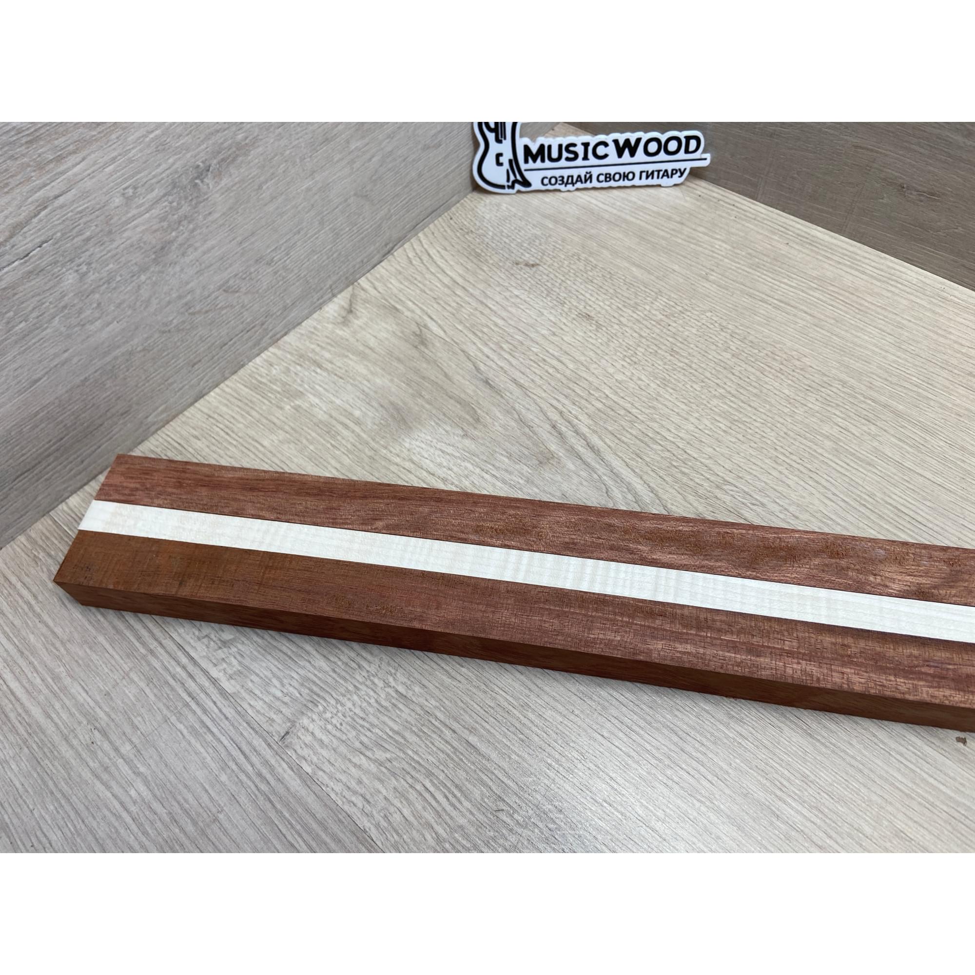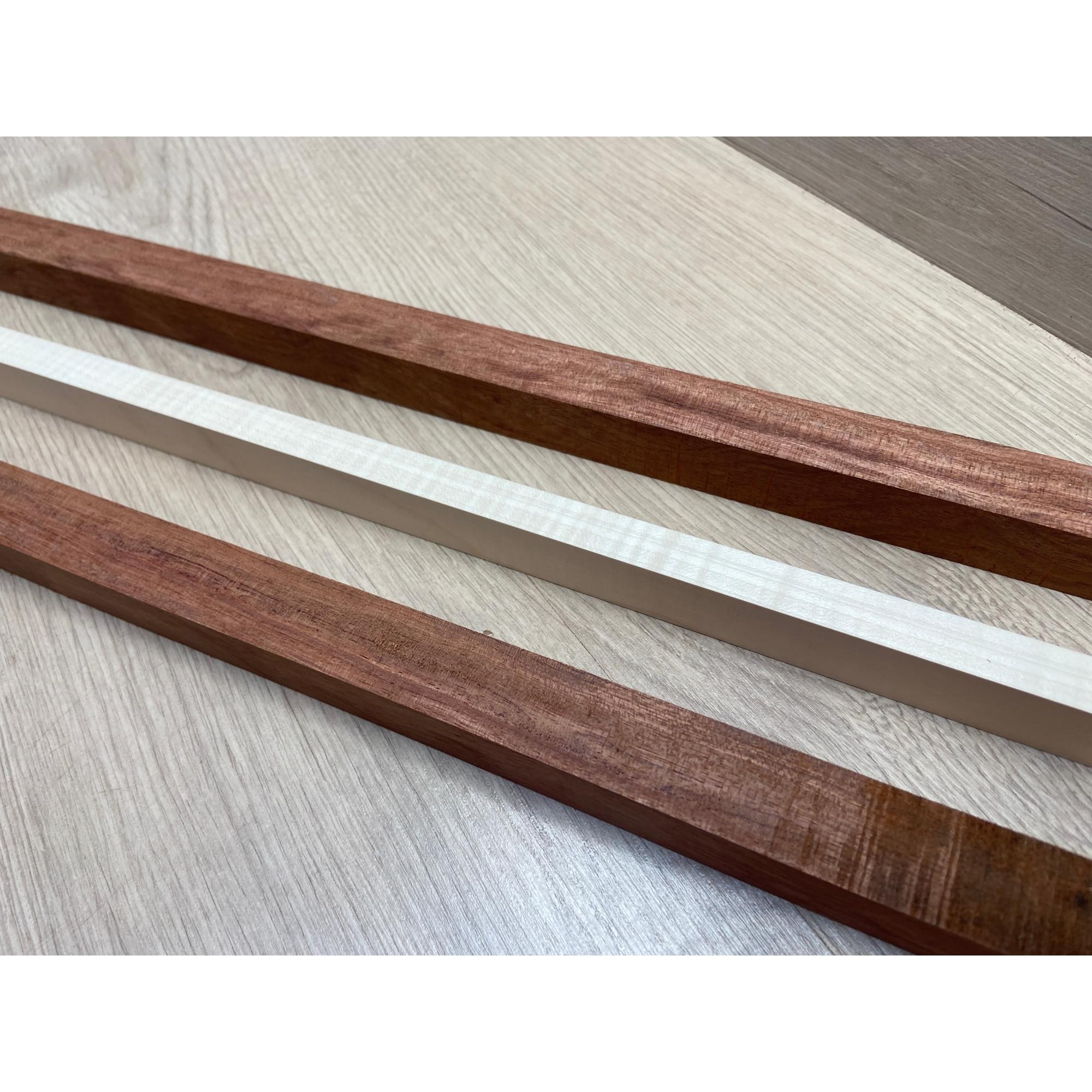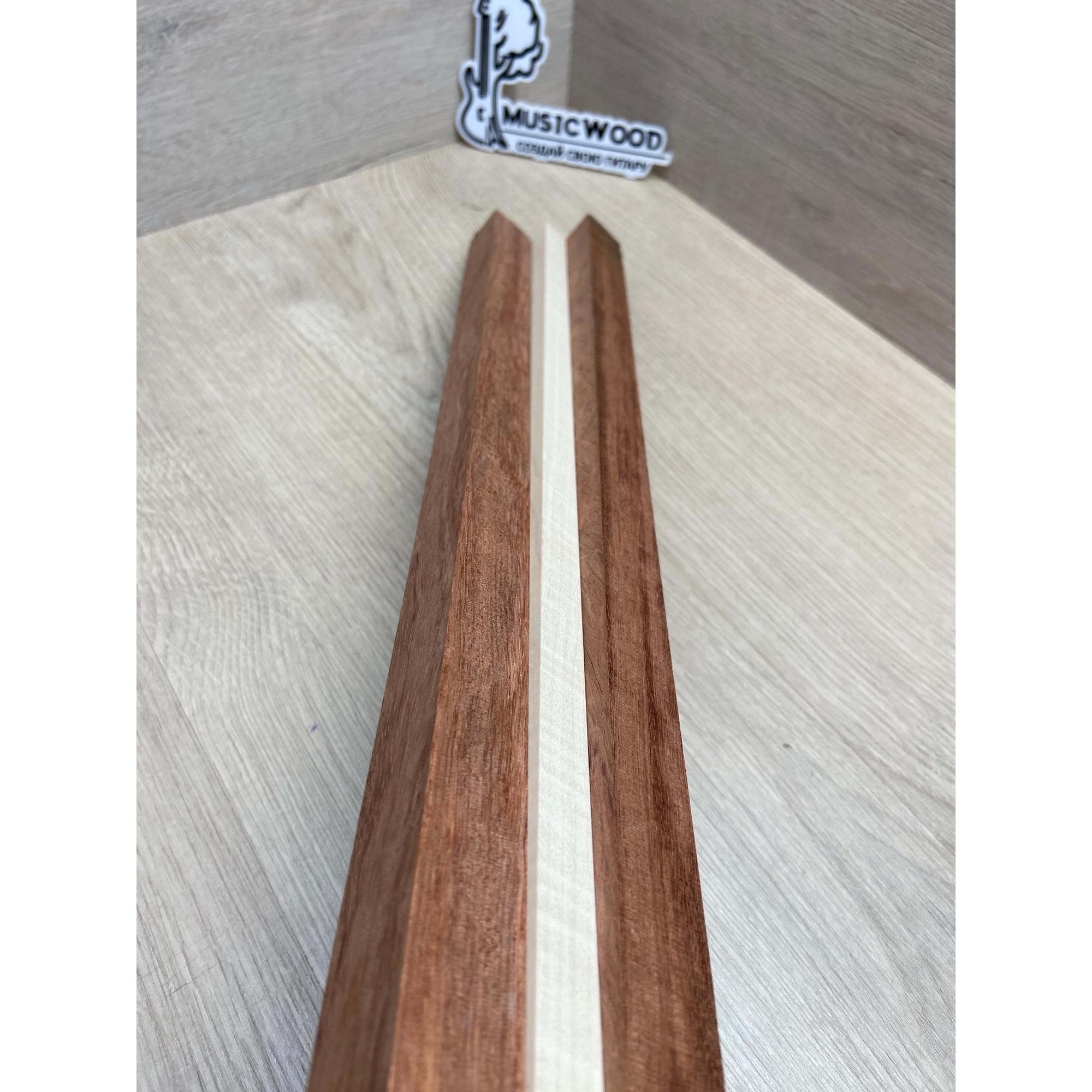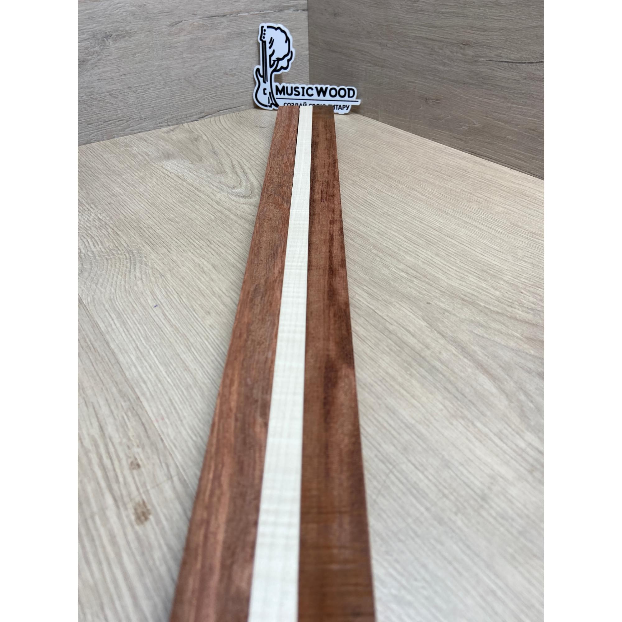 Бубинго/Клён Белый Явор, Волнистый заготовка для переклеенного грифа безголовой гитары Радиал ААА Волна АА 22х(23-13-23)х570 мм (из 3х частей)