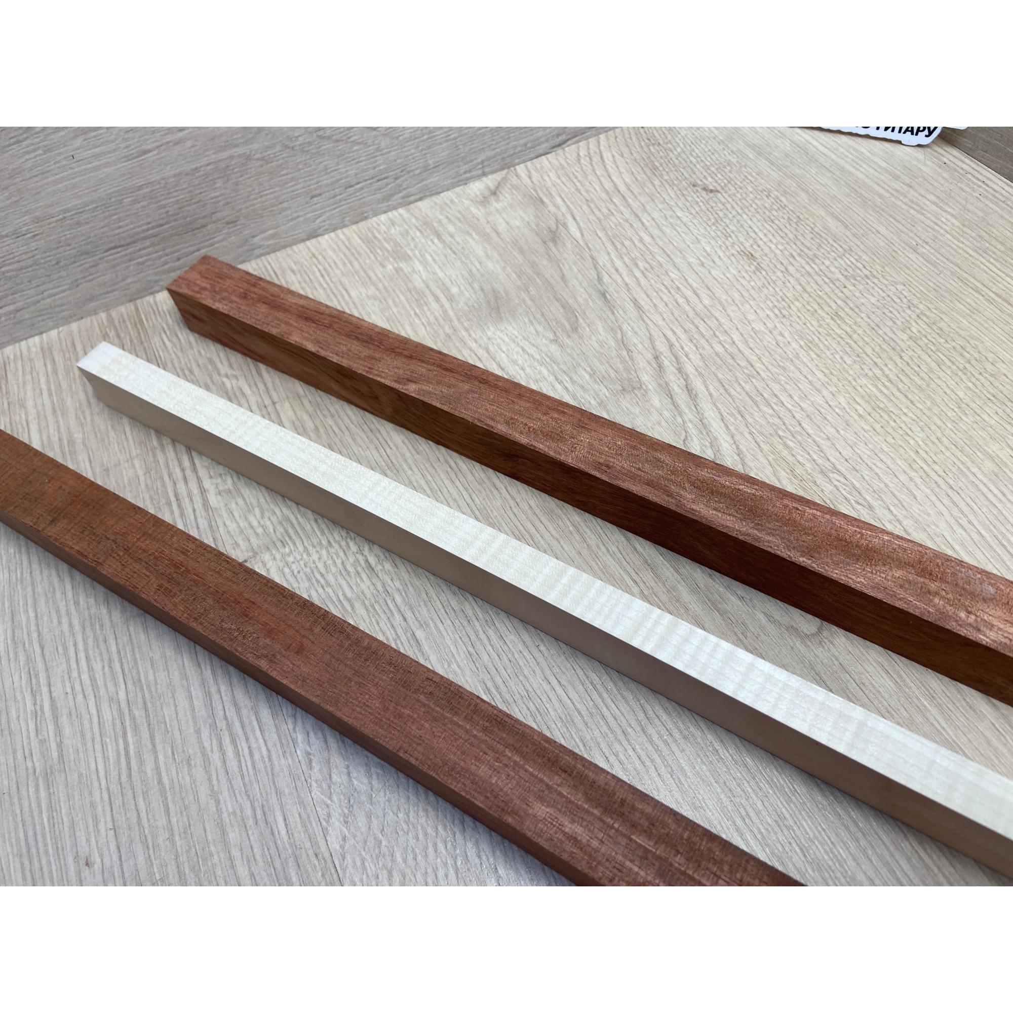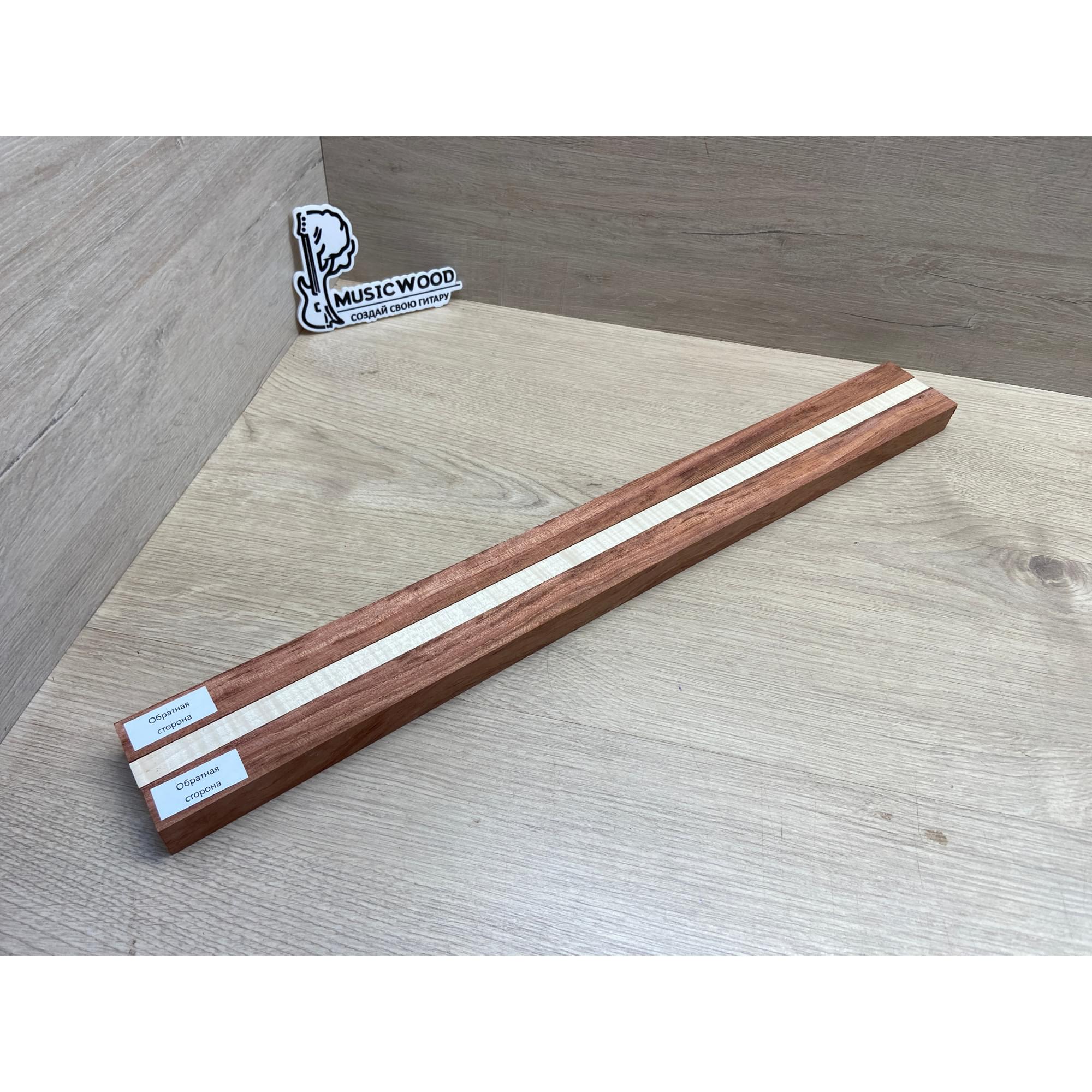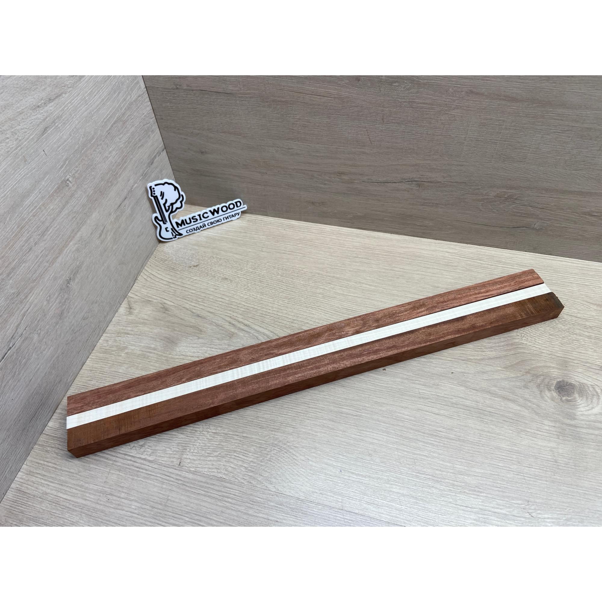 Бубинго/Клён Белый Явор, Волнистый заготовка для переклеенного грифа безголовой гитары Радиал ААА Волна АА 22х(23-13-23)х570 мм (из 3х частей)