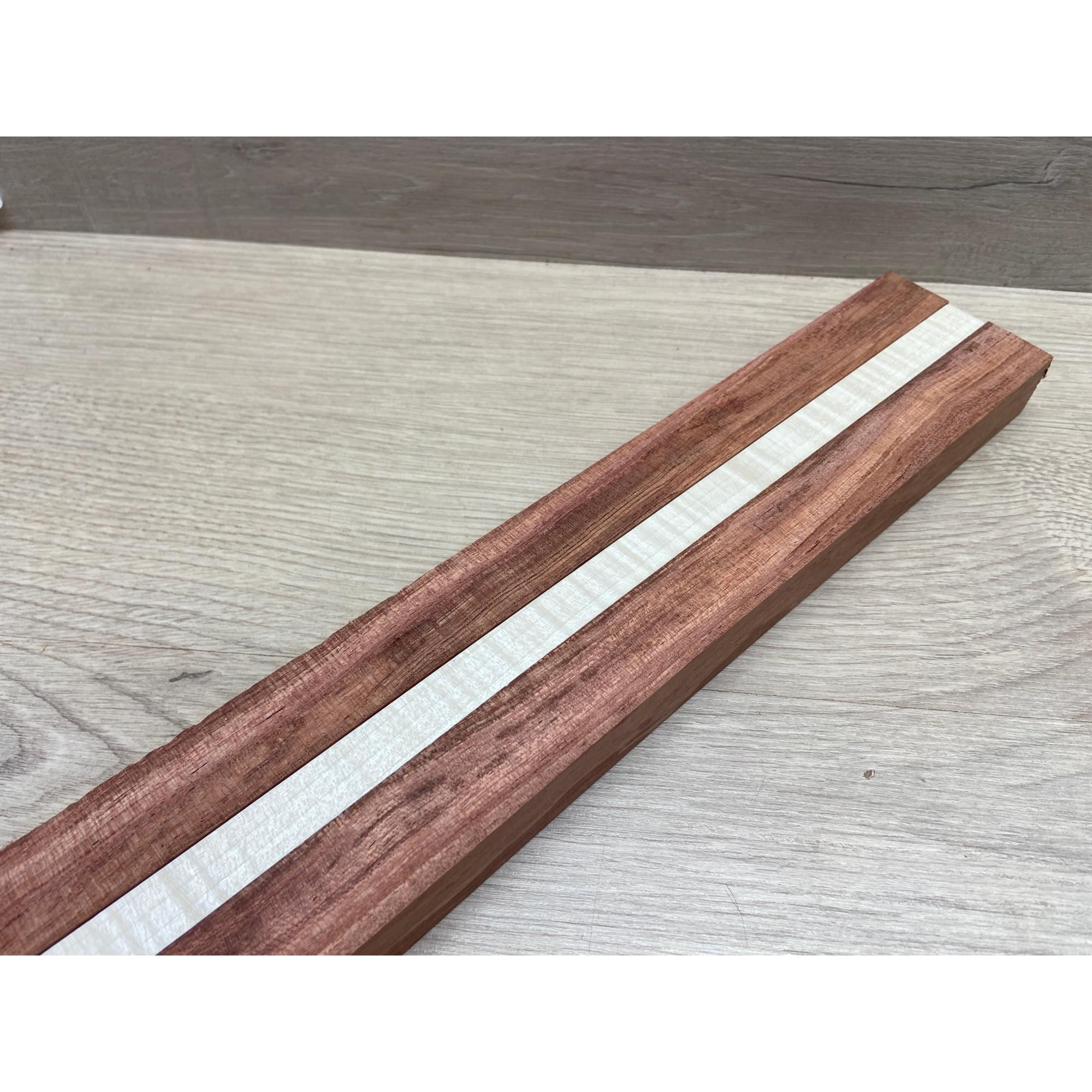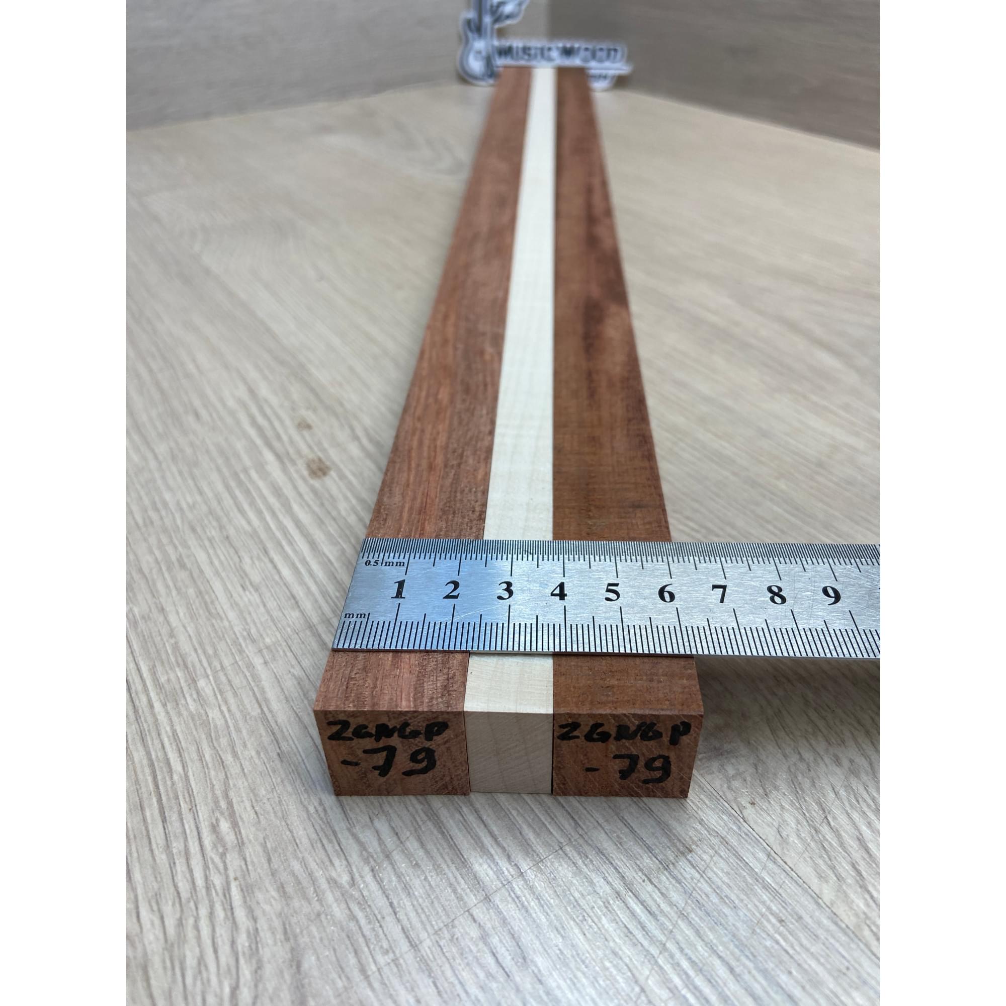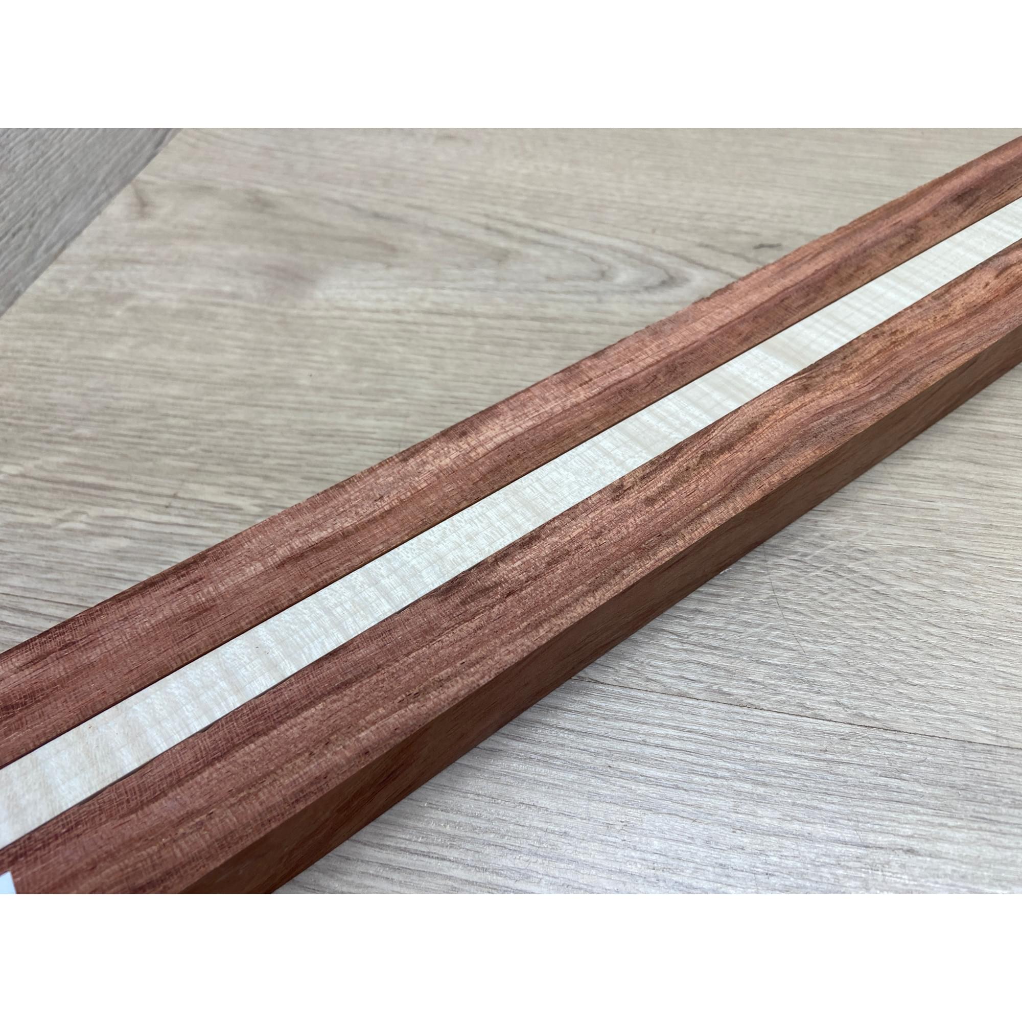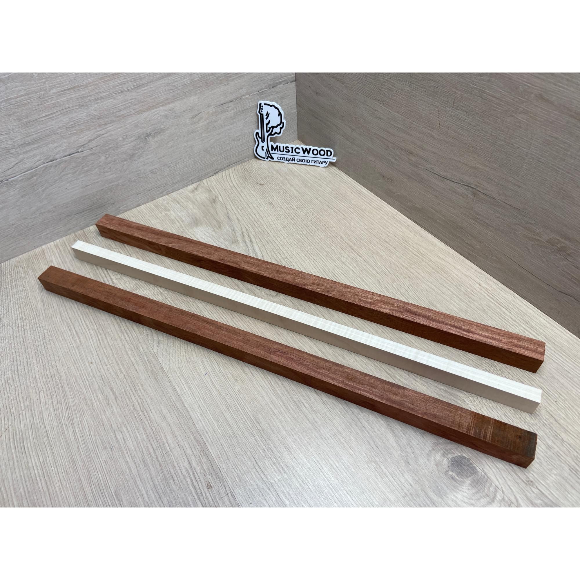 Бубинго/Клён Белый Явор, Волнистый заготовка для переклеенного грифа безголовой гитары Радиал ААА Волна АА 22х(23-13-23)х570 мм (из 3х частей)