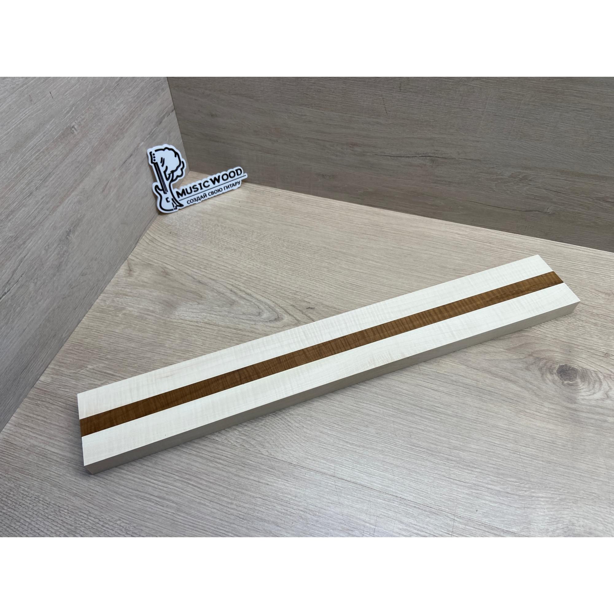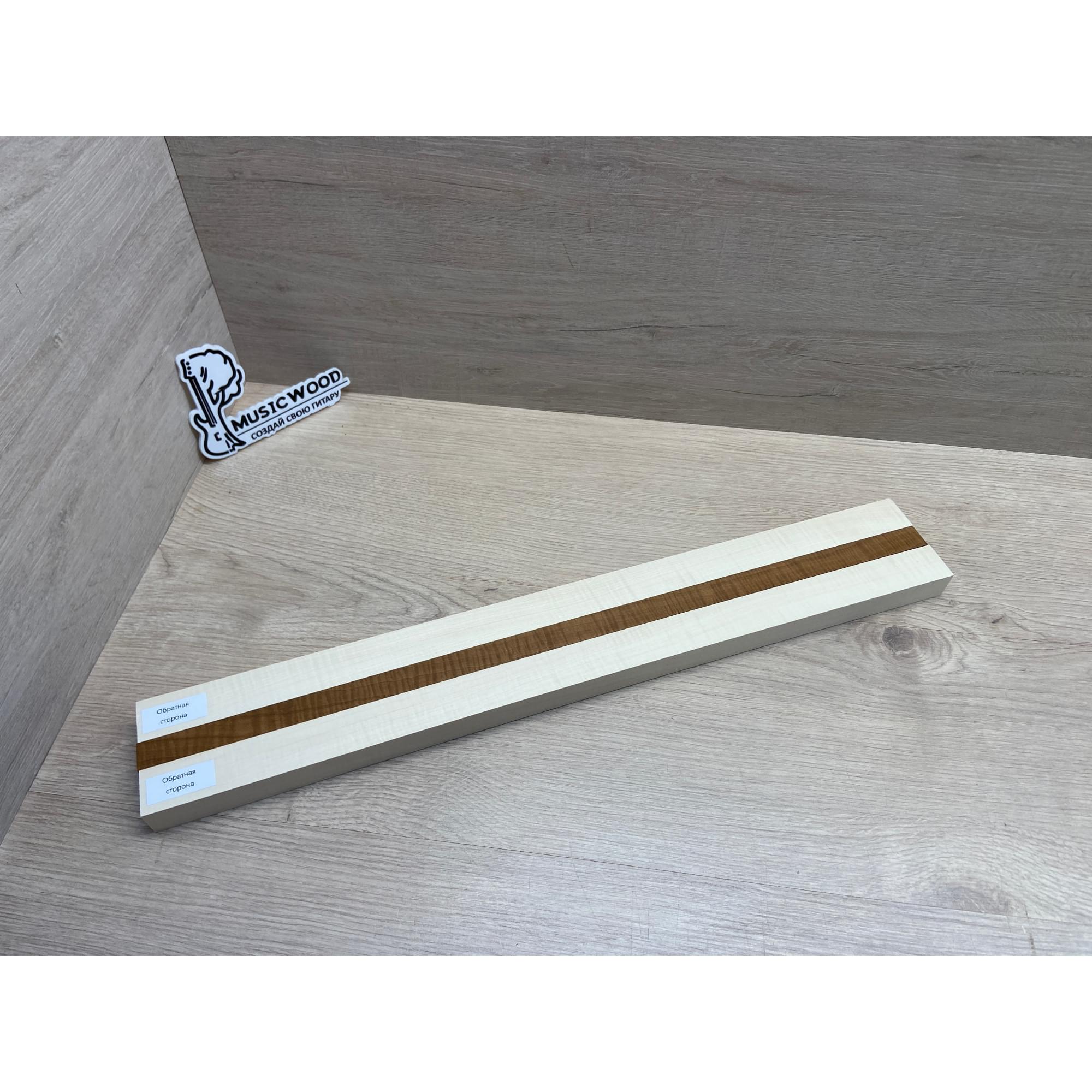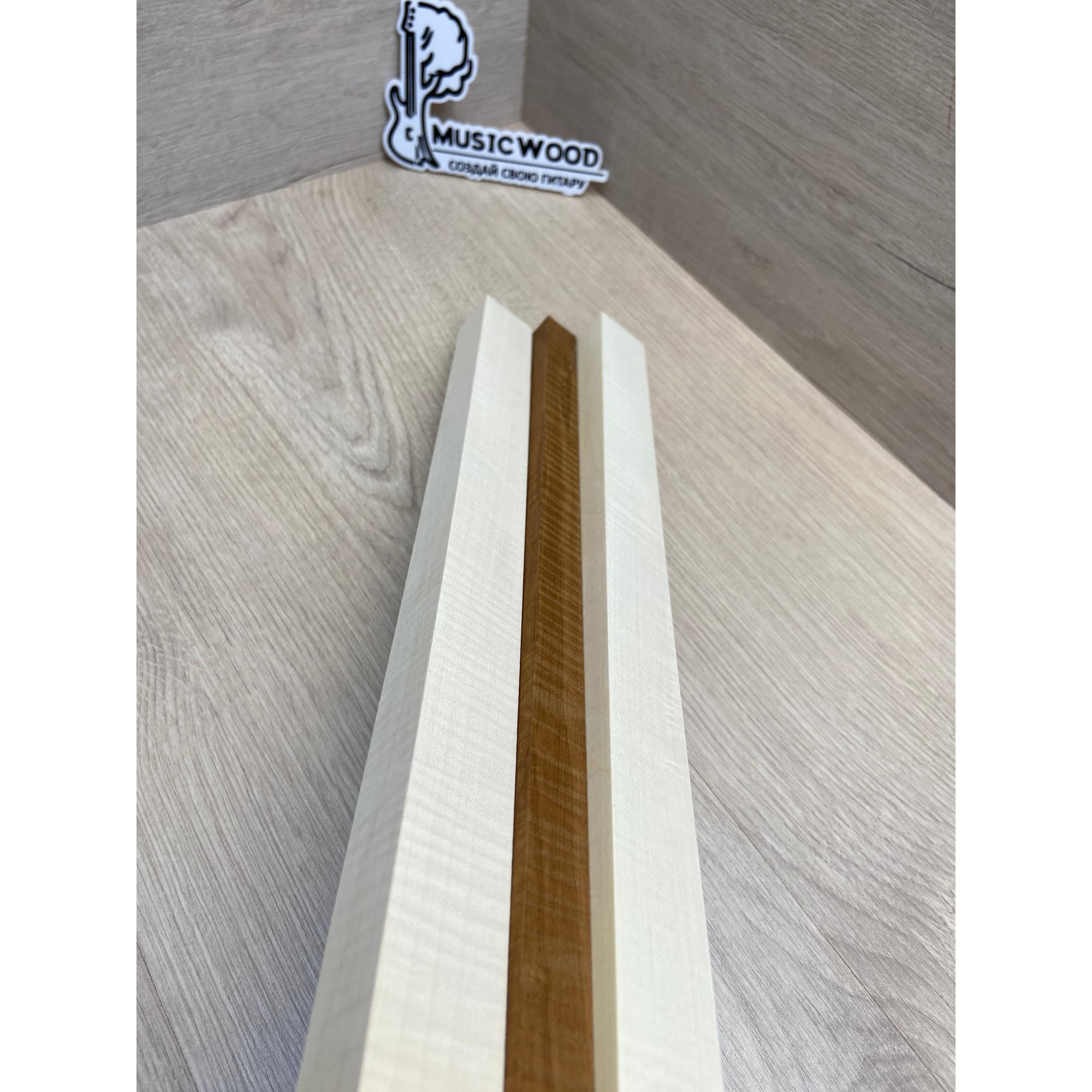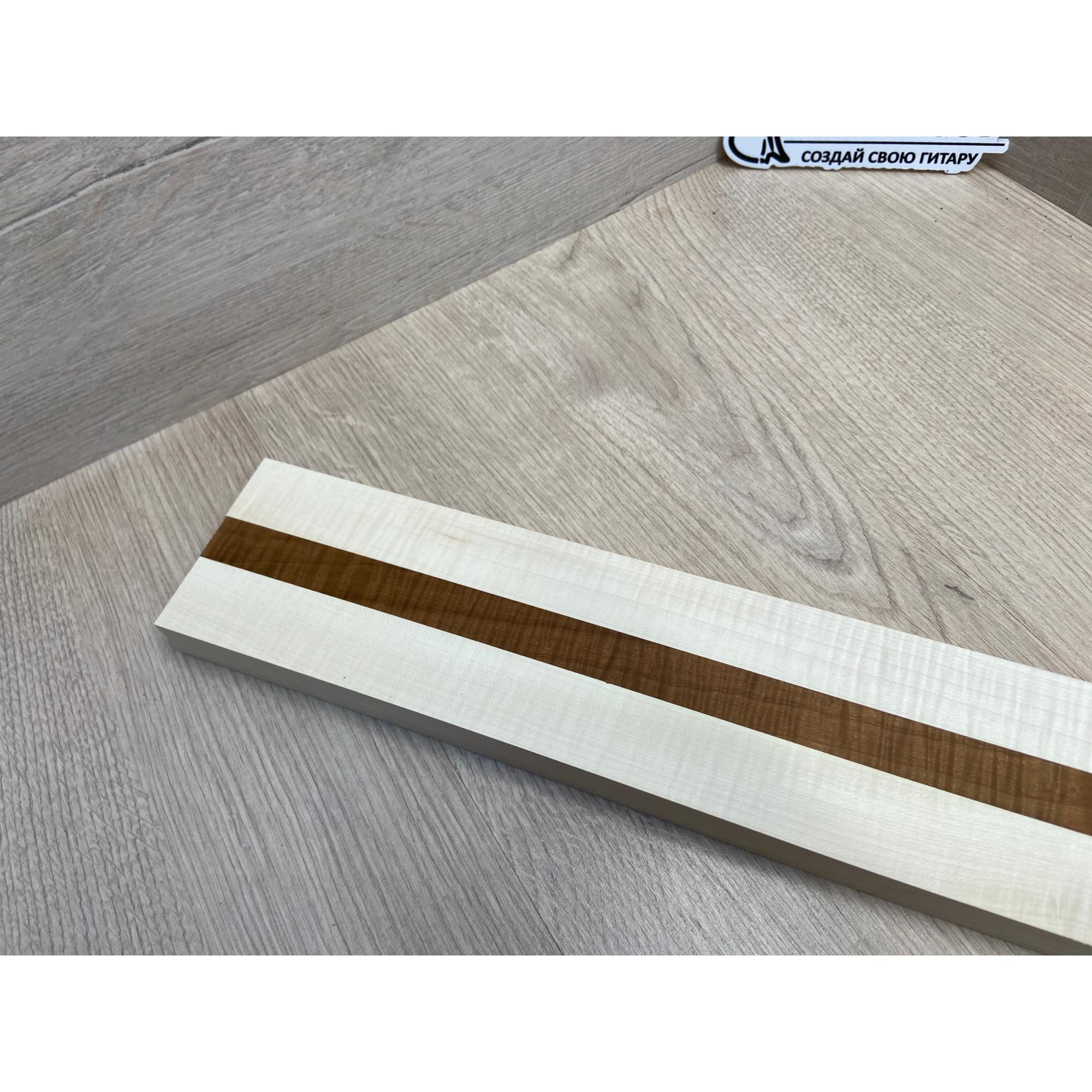 Клен Белый Явор, Волнистый/Клен Волнистый Печёный 180гр заготовка для переклеенного грифа безголовой гитары Радиал АА Волна АА 23х(28-17-28)х542 мм - из 3х частей