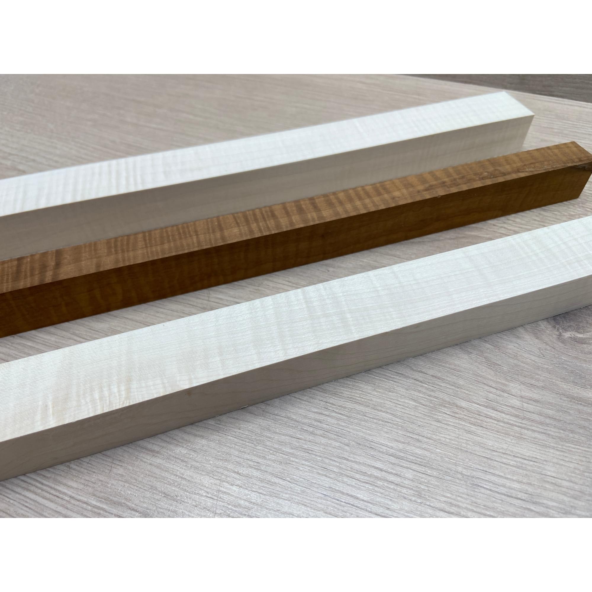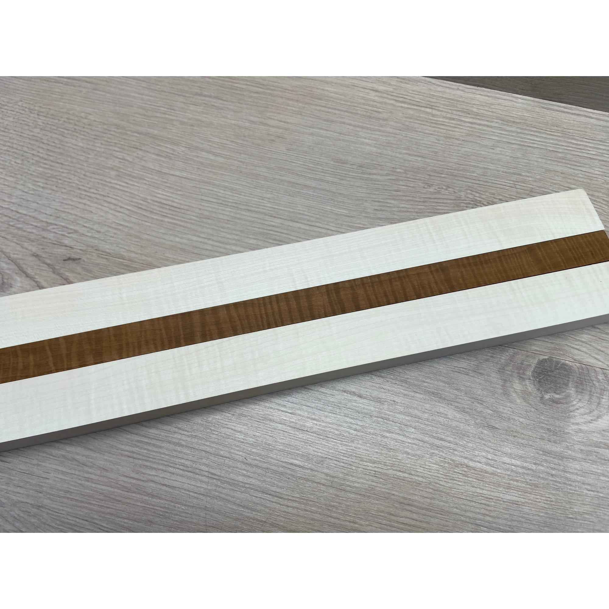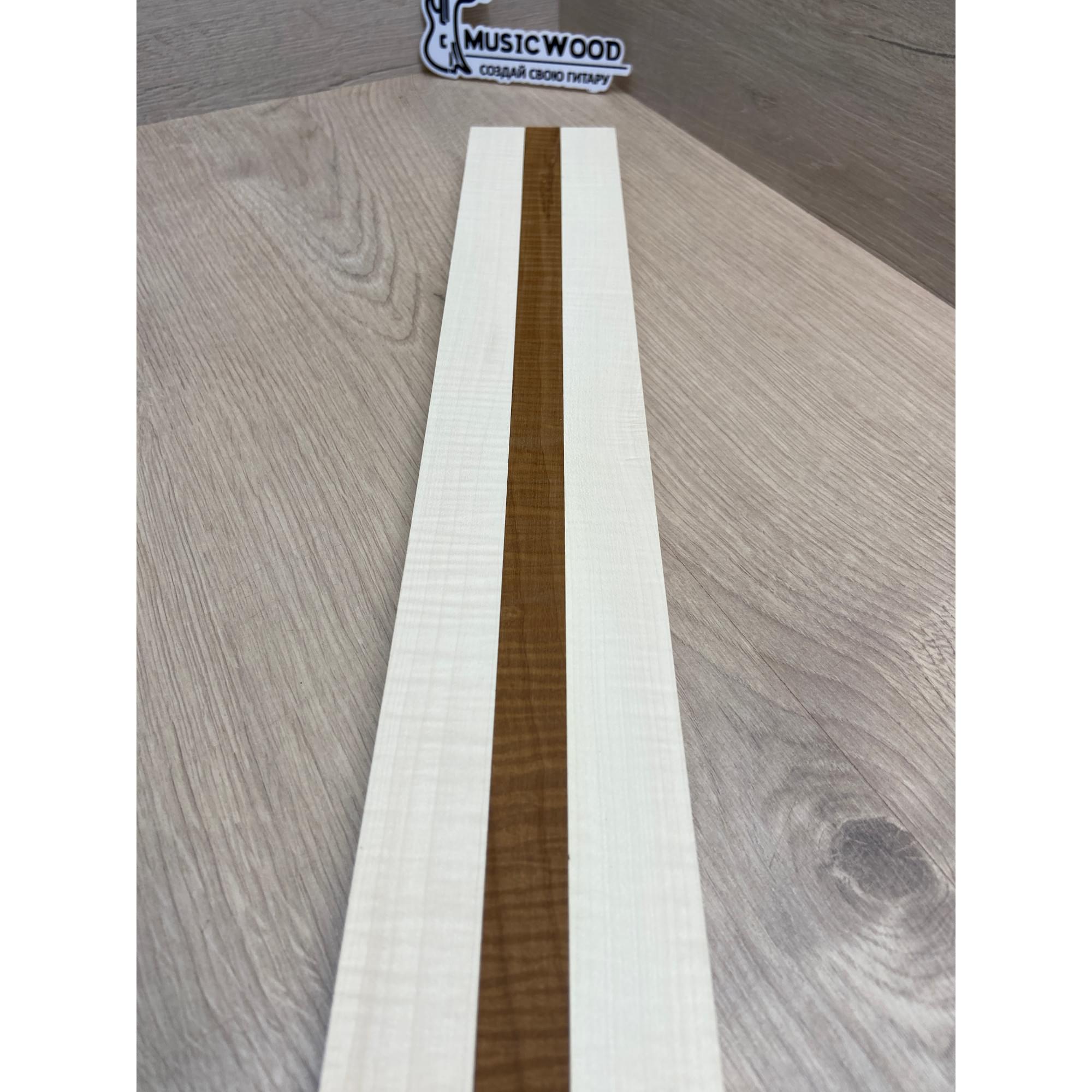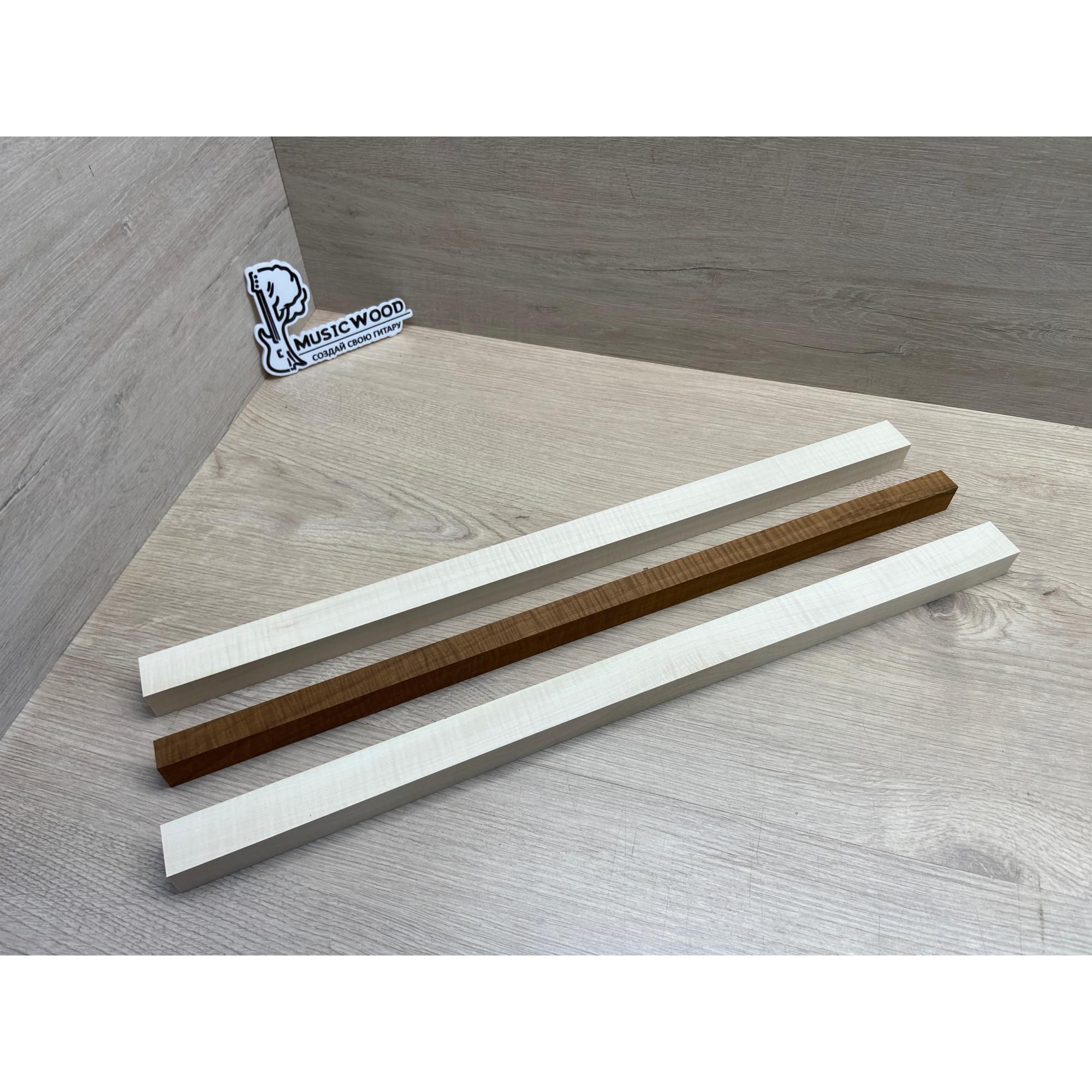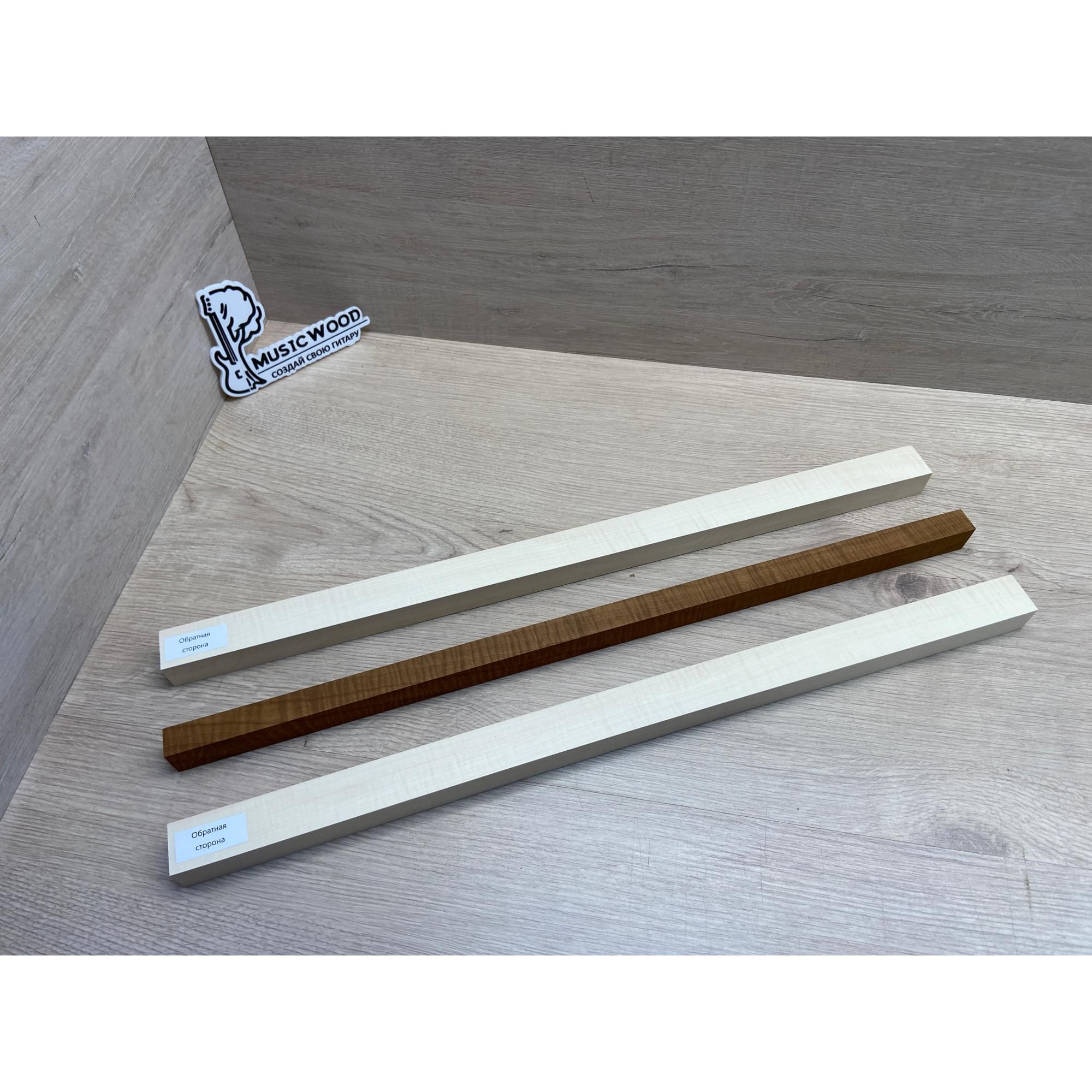 Клен Белый Явор, Волнистый/Клен Волнистый Печёный 180гр заготовка для переклеенного грифа безголовой гитары Радиал АА Волна АА 23х(28-17-28)х542 мм - из 3х частей