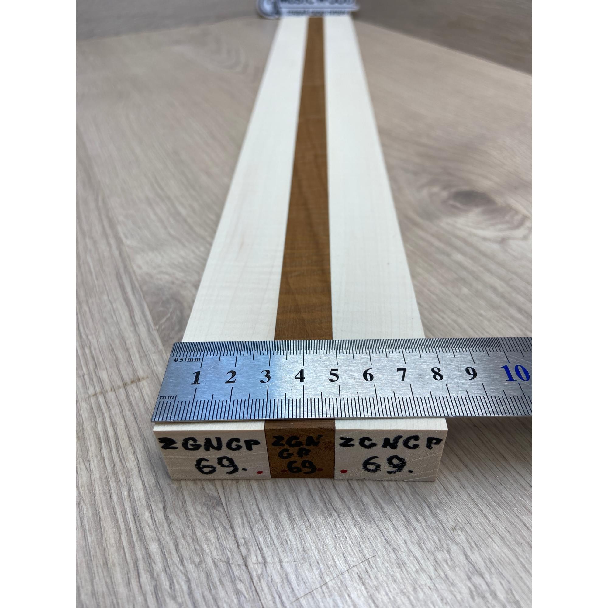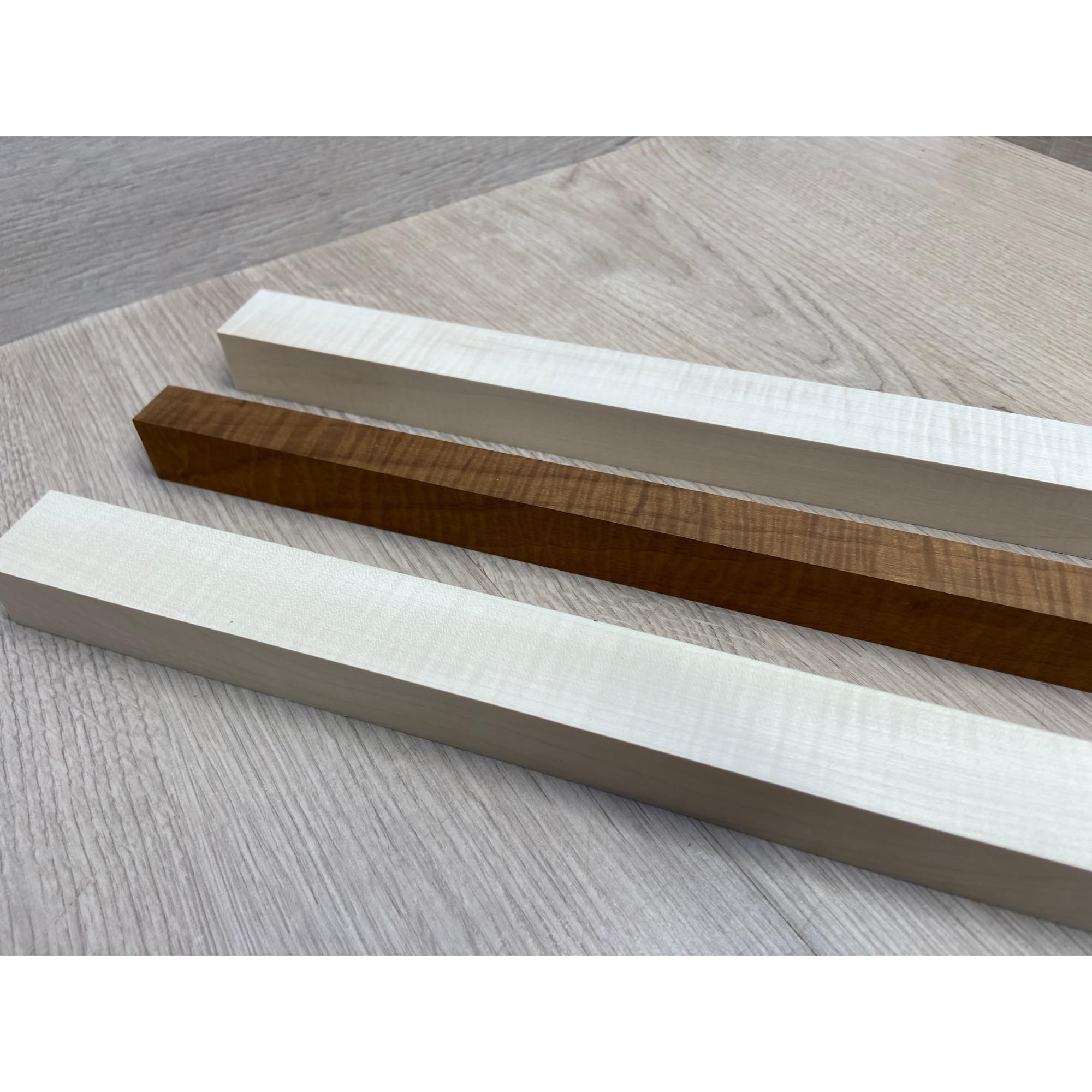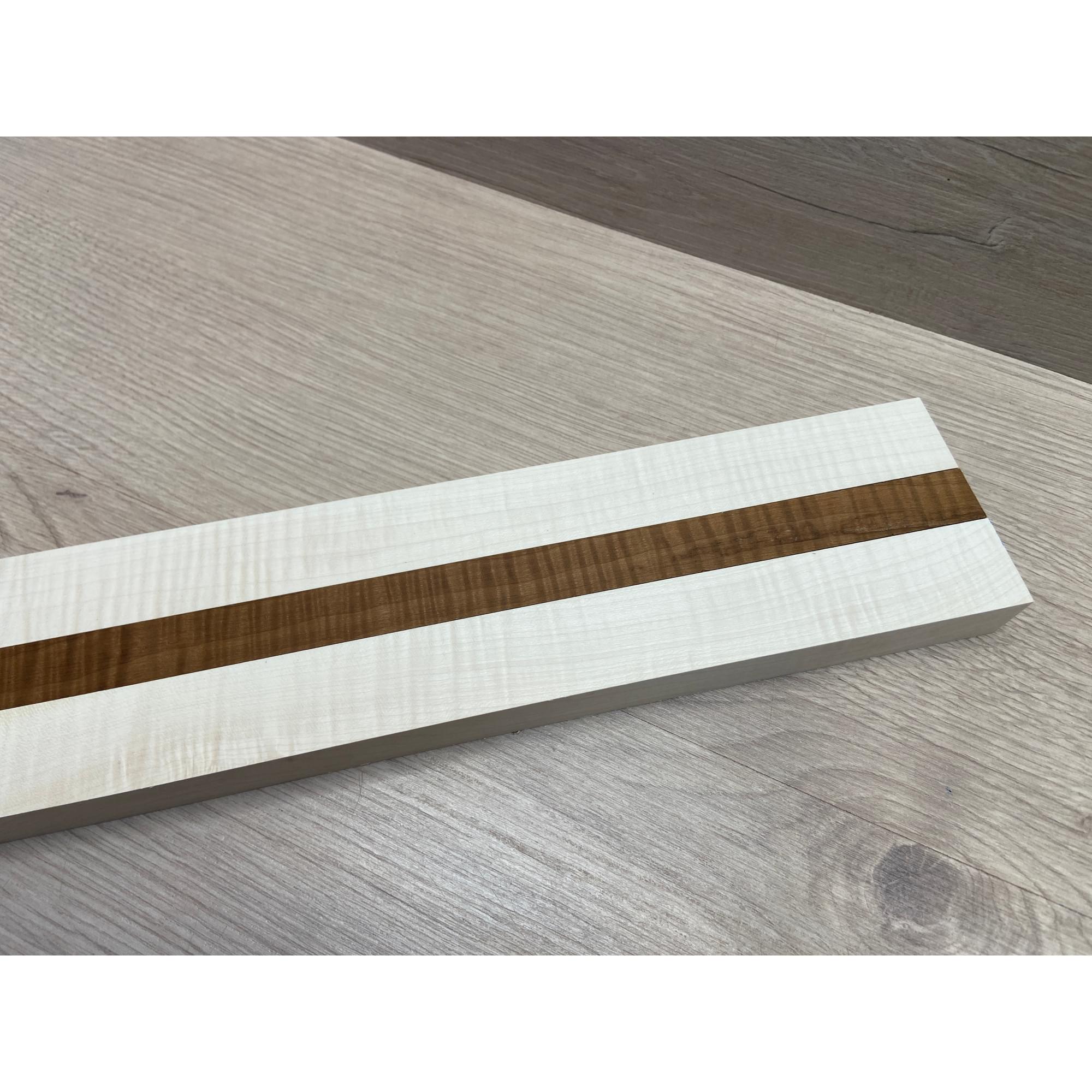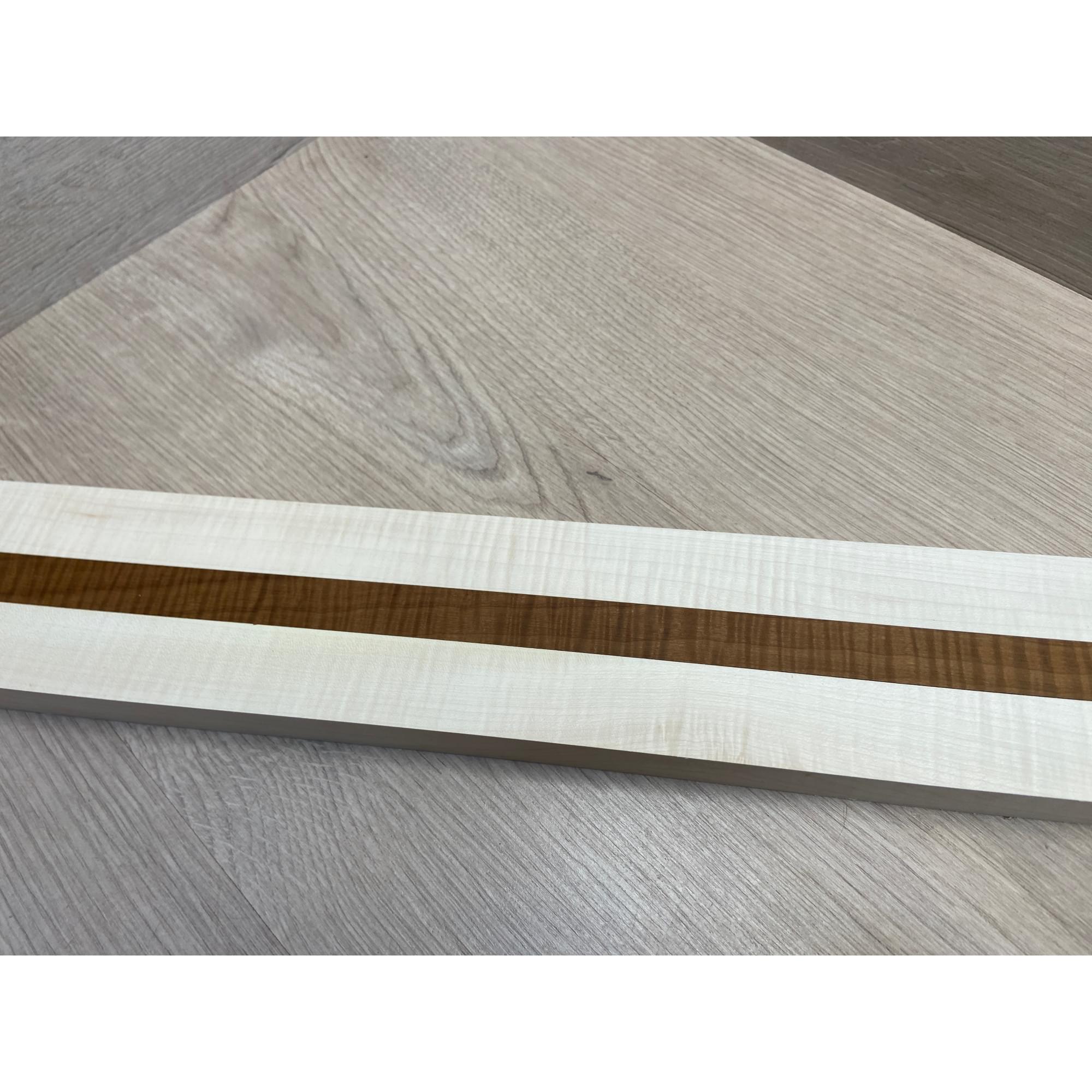 Клен Белый Явор, Волнистый/Клен Волнистый Печёный 180гр заготовка для переклеенного грифа безголовой гитары Радиал АА Волна АА 23х(28-17-28)х542 мм - из 3х частей