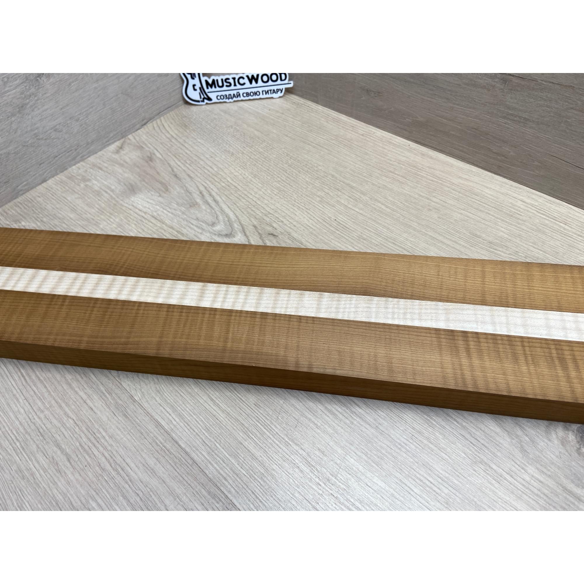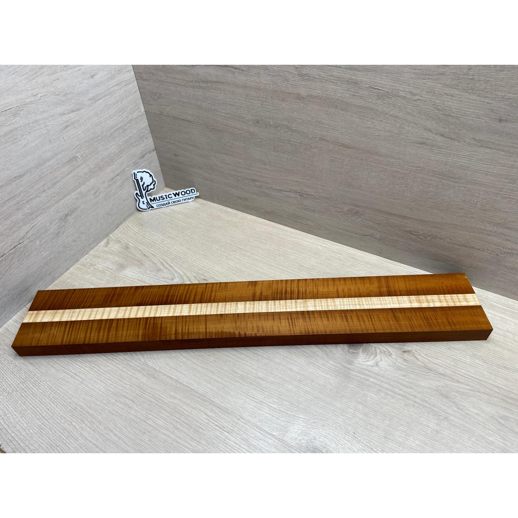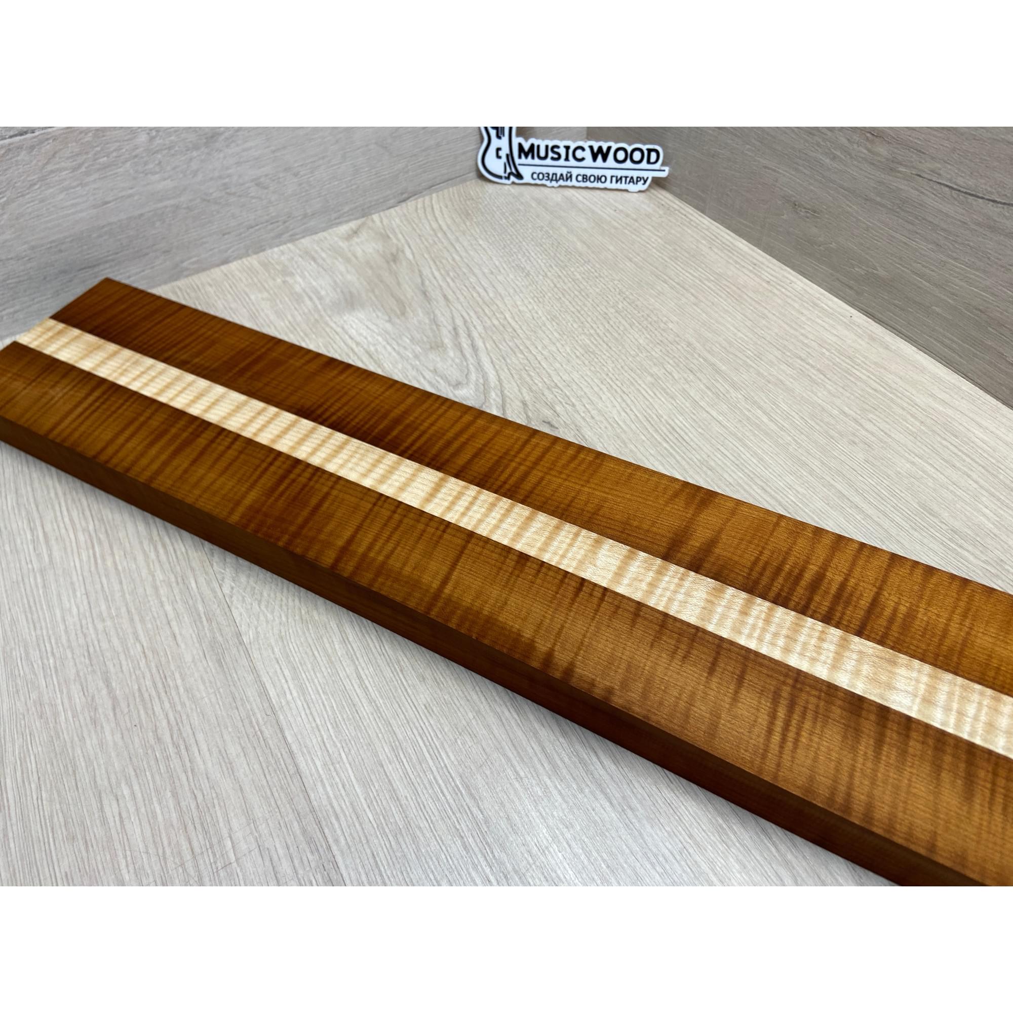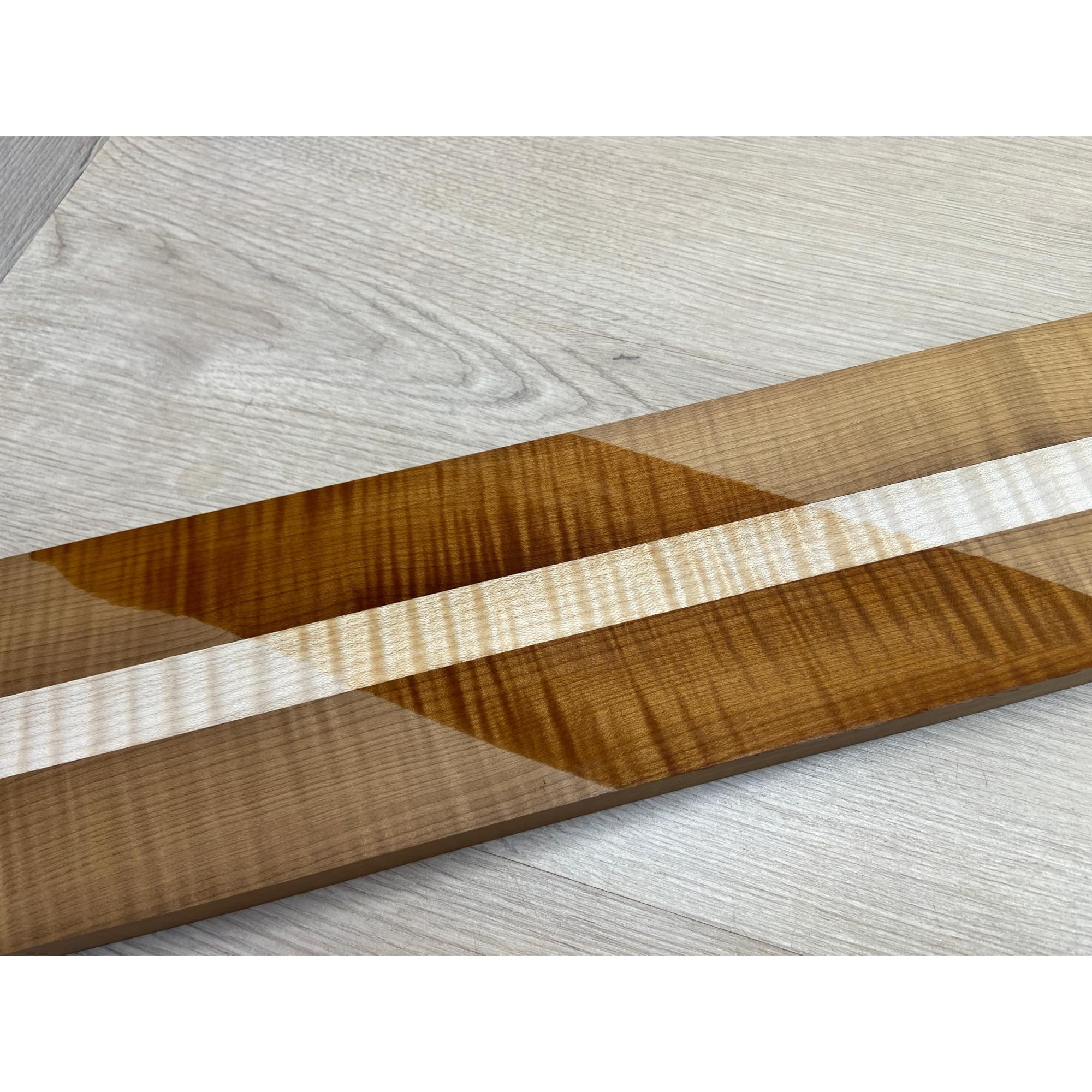 Клён Волнистый Печёный 180гр/Клён Белый Явор, Волнистый заготовка для переклеенного грифа электрогитары Радиал АА Волна ААА 28.5х(44-22-44)х730 мм - из 3х частей