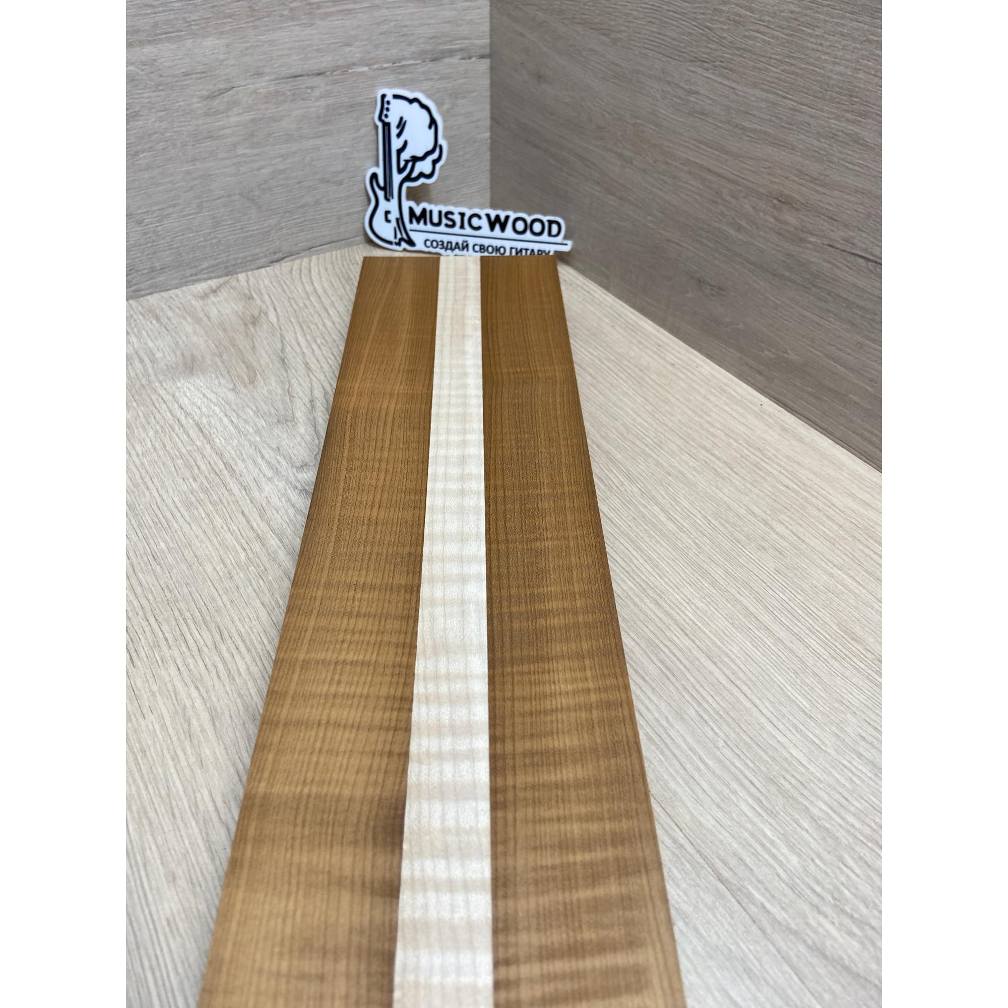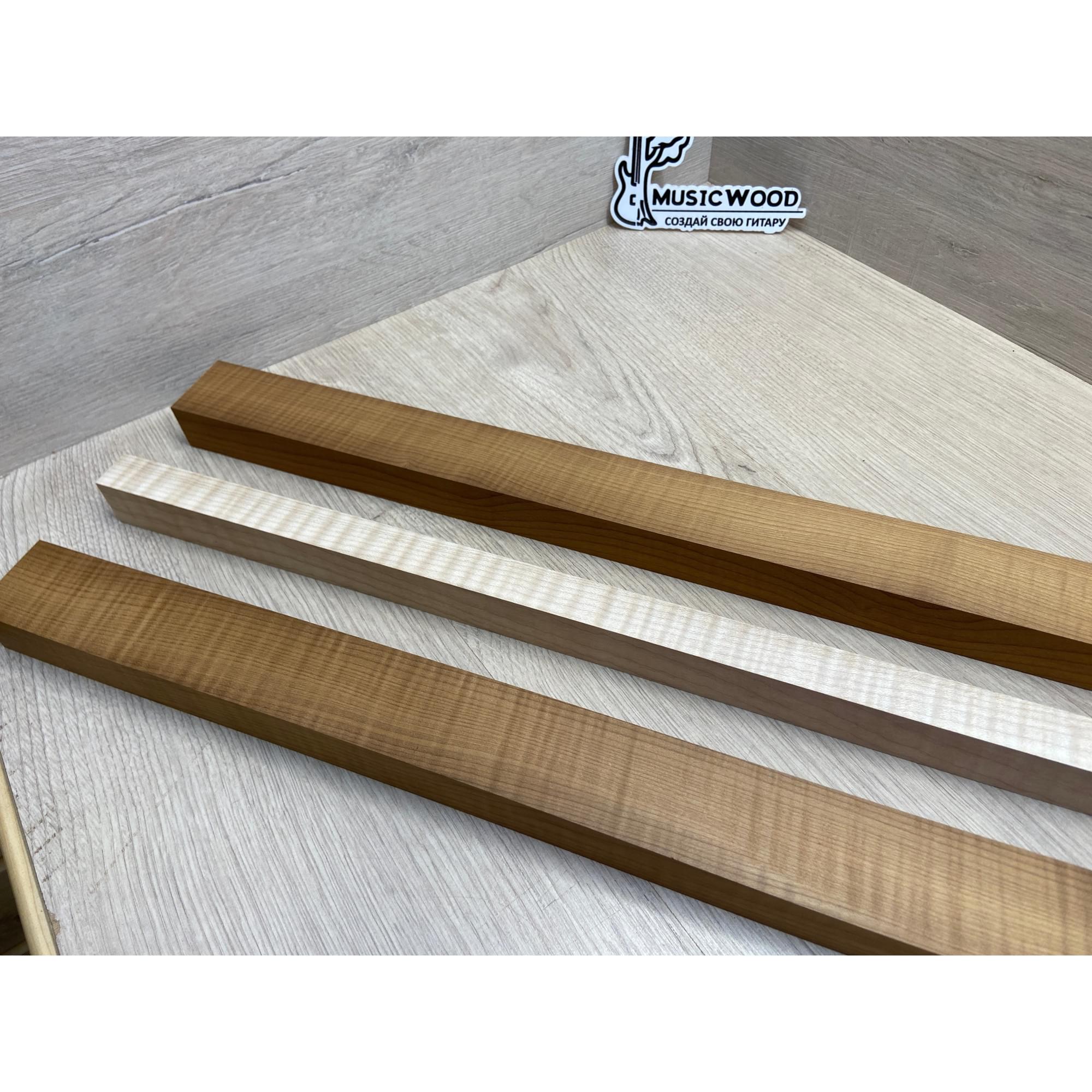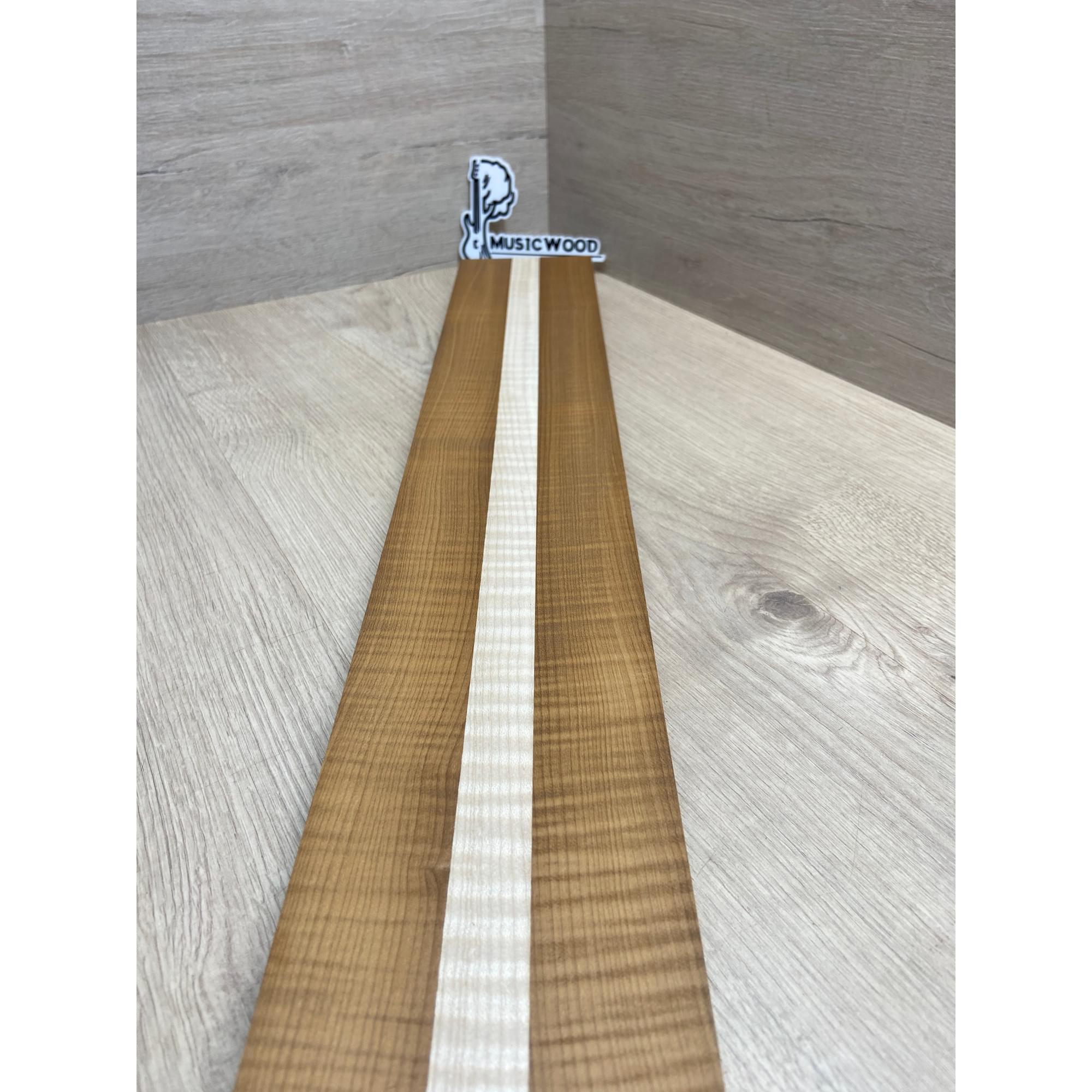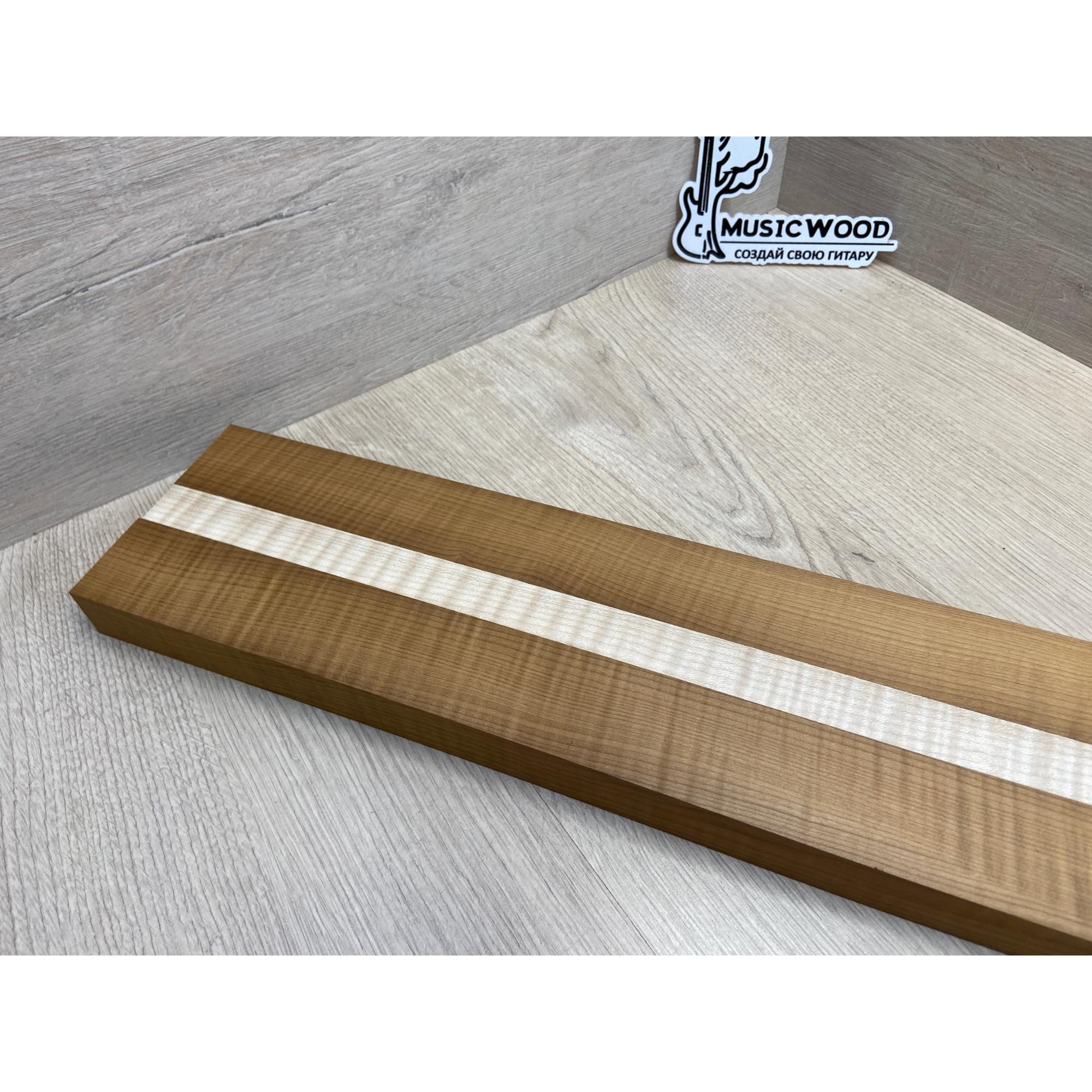 Клён Волнистый Печёный 180гр/Клён Белый Явор, Волнистый заготовка для переклеенного грифа электрогитары Радиал АА Волна ААА 28.5х(44-22-44)х730 мм - из 3х частей