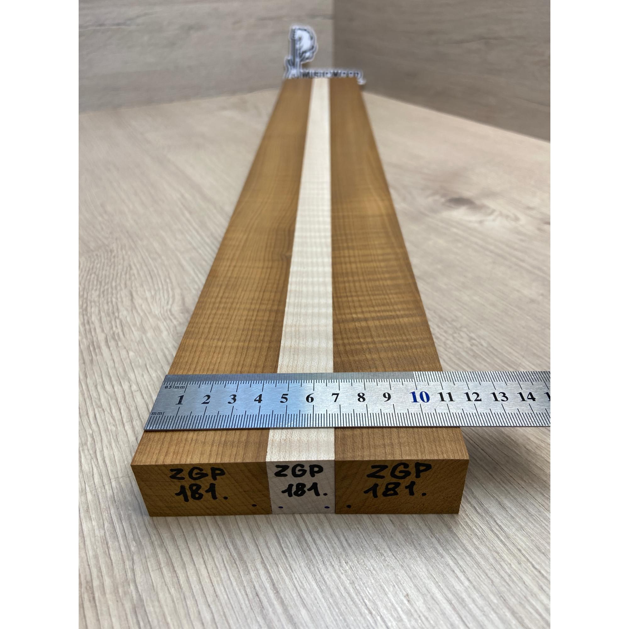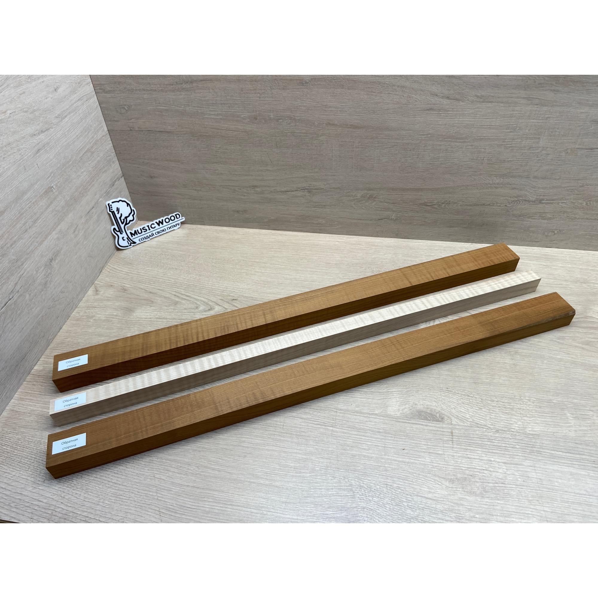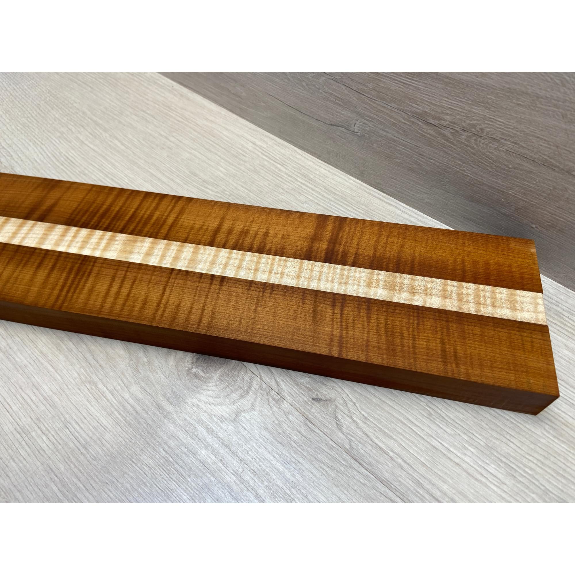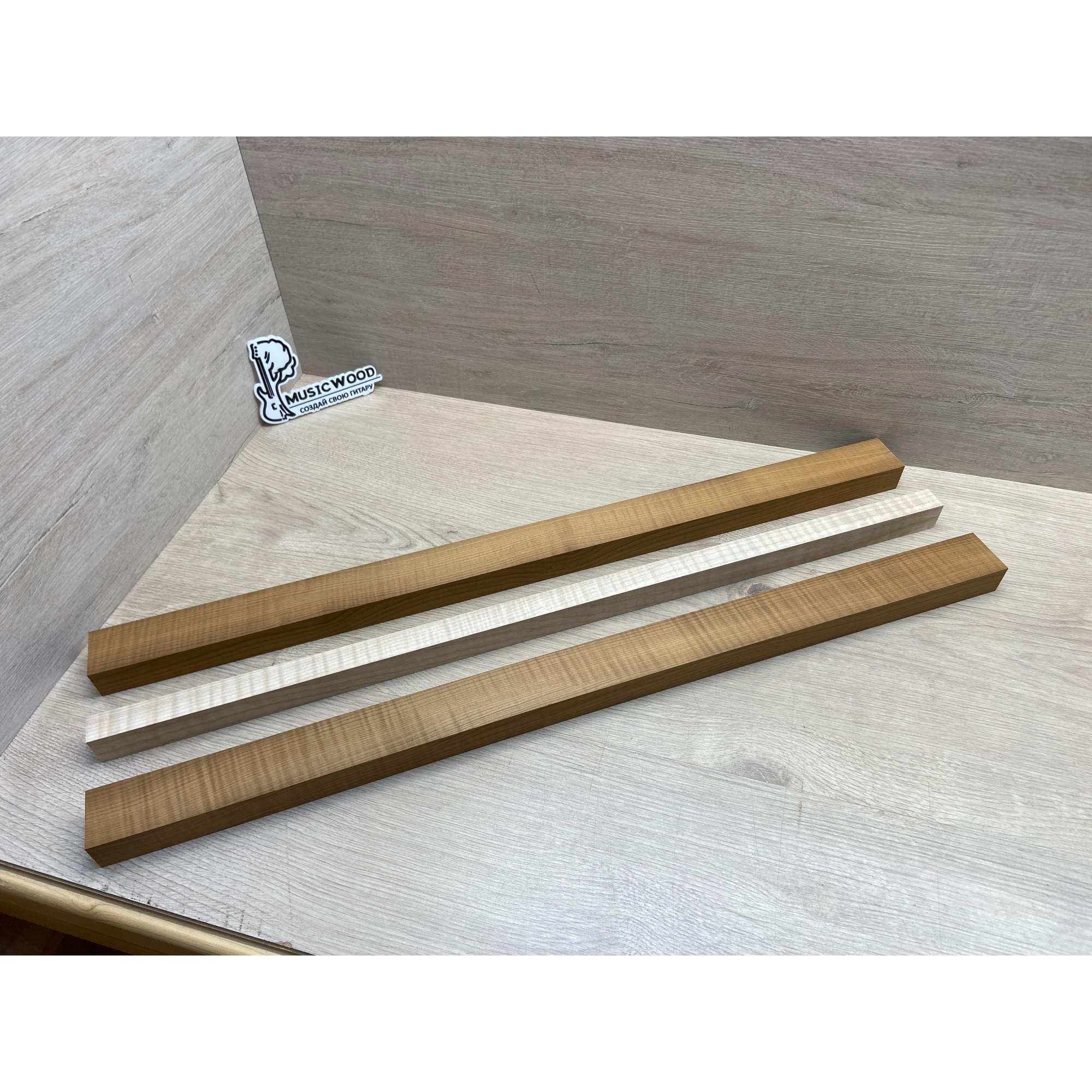 Клён Волнистый Печёный 180гр/Клён Белый Явор, Волнистый заготовка для переклеенного грифа электрогитары Радиал АА Волна ААА 28.5х(44-22-44)х730 мм - из 3х частей
