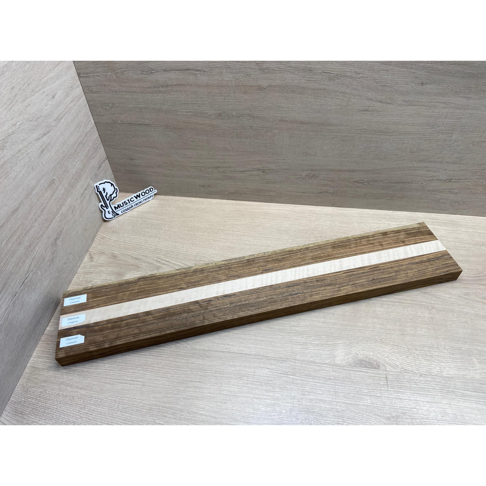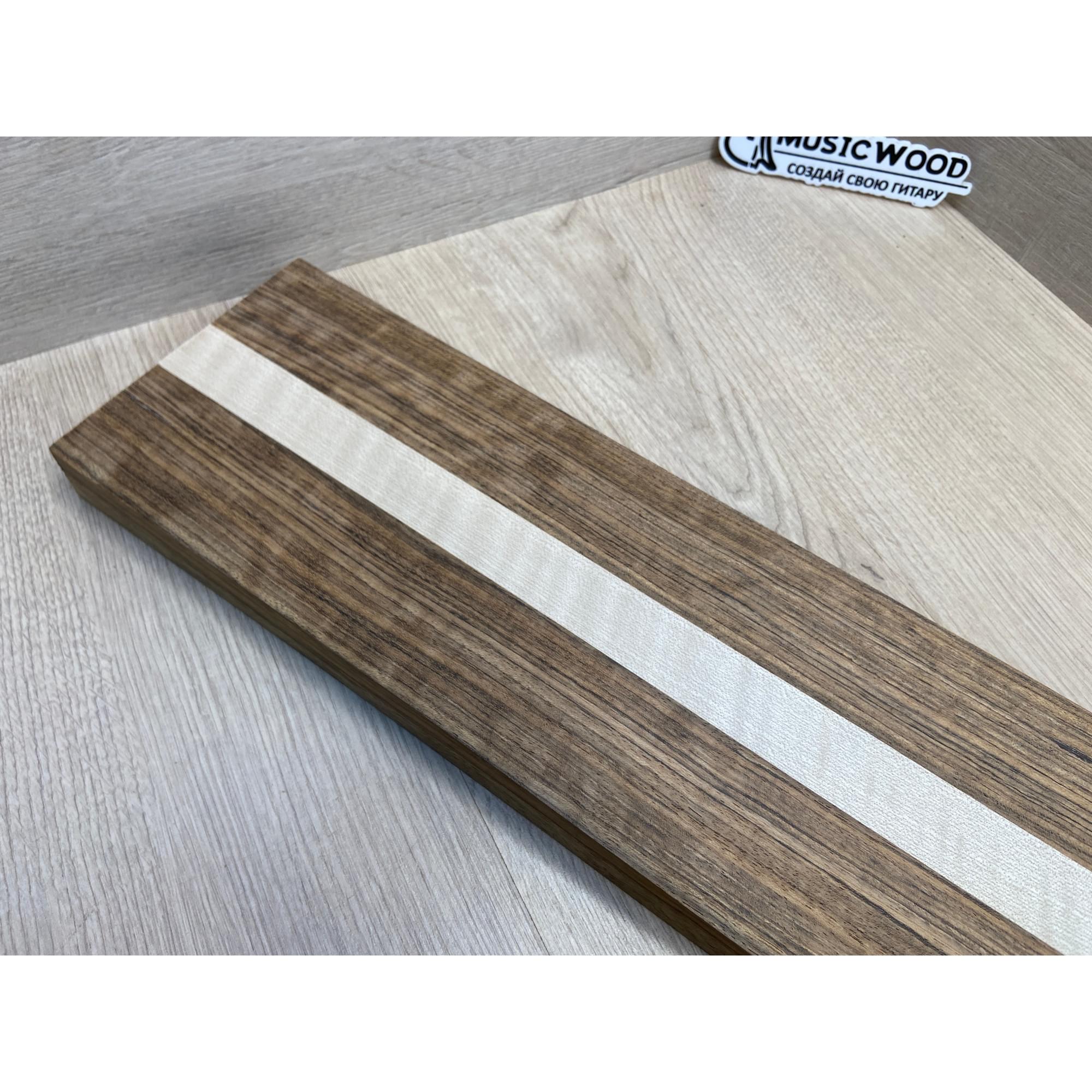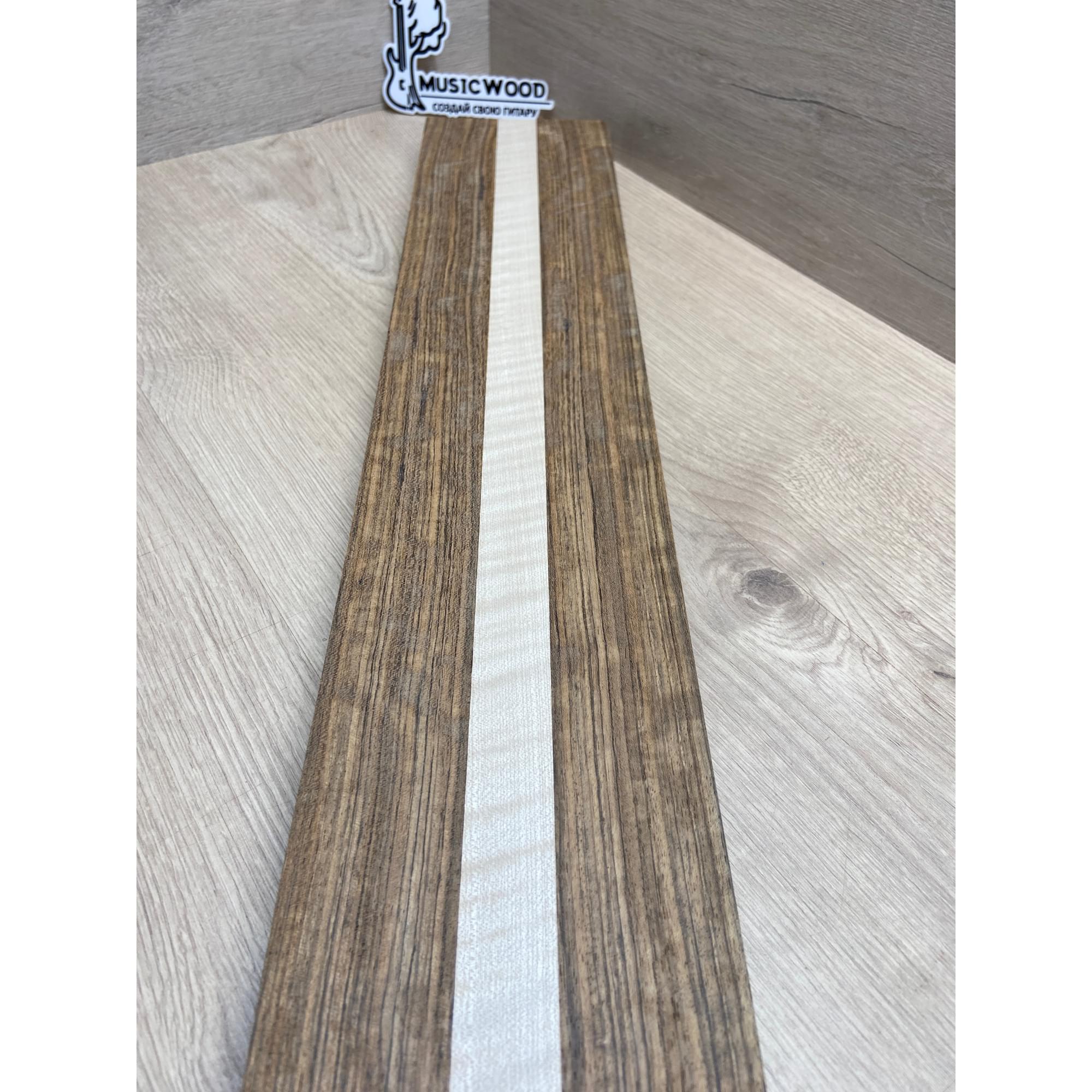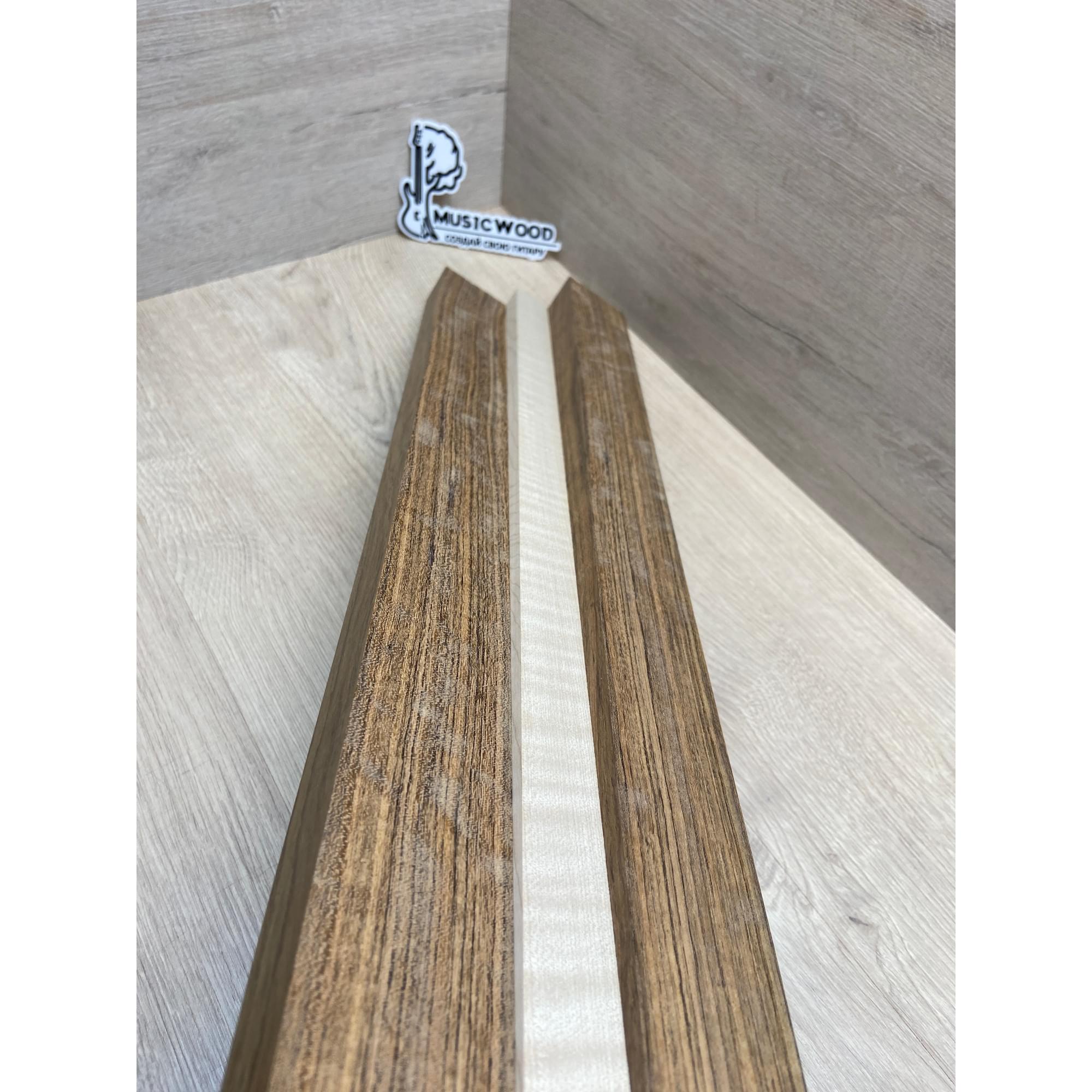 Овенгкол/Клён Белый Явор, Волнистый заготовка для переклеенного грифа электрогитары Радиал ААААА 29х(51-27-51)х725 мм - из 3х частей