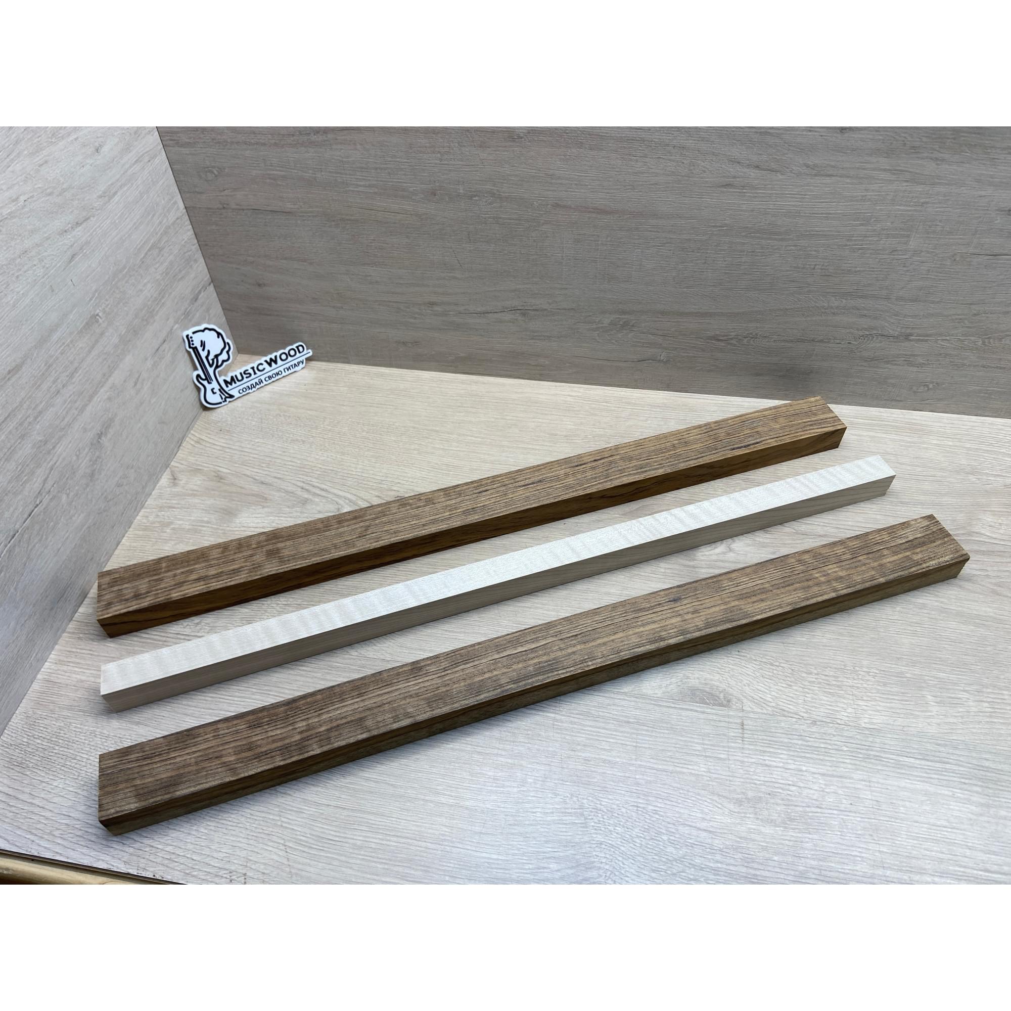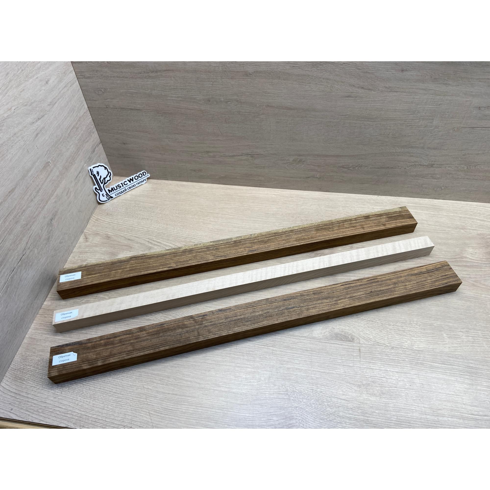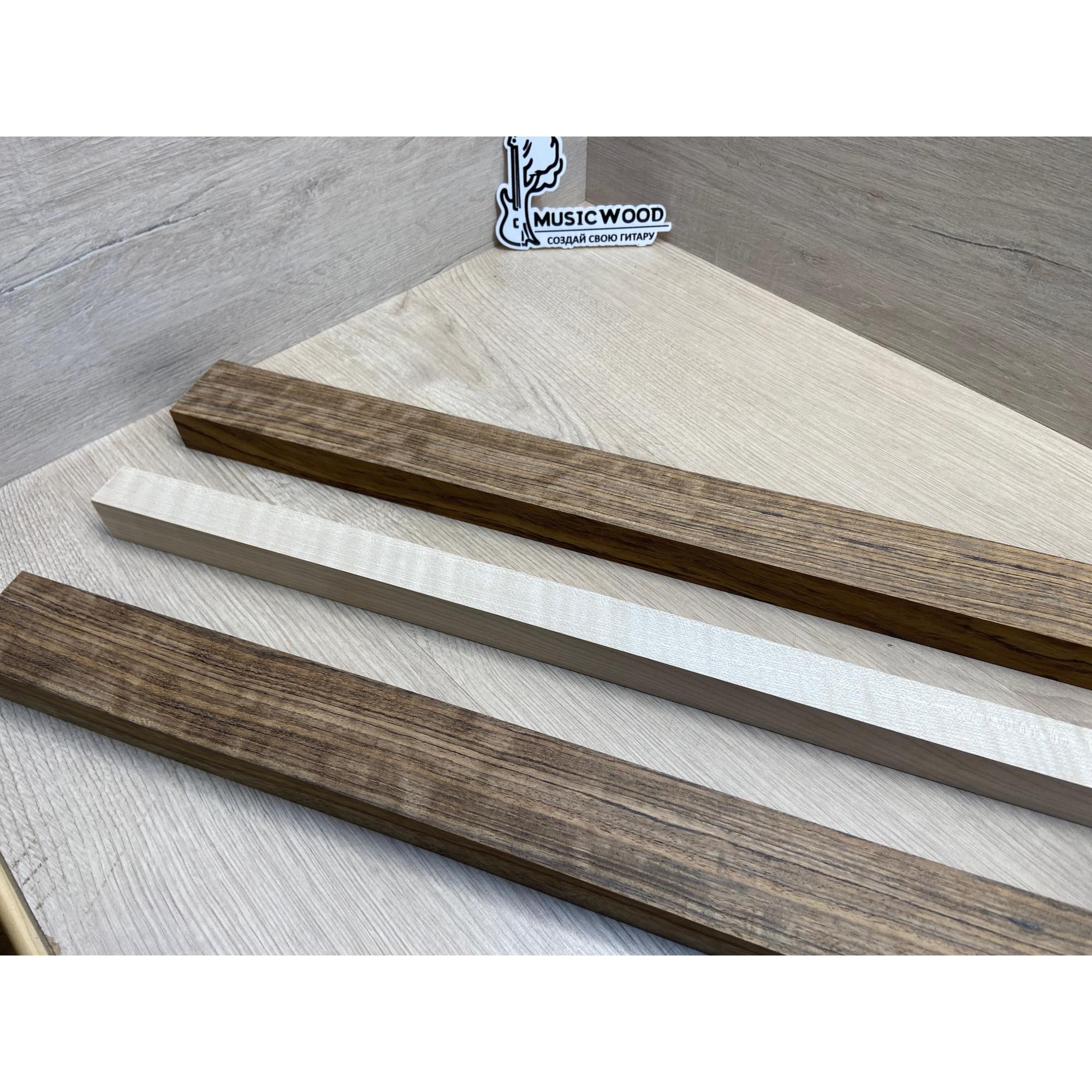 Овенгкол/Клён Белый Явор, Волнистый заготовка для переклеенного грифа электрогитары Радиал ААААА 29х(51-27-51)х725 мм - из 3х частей
