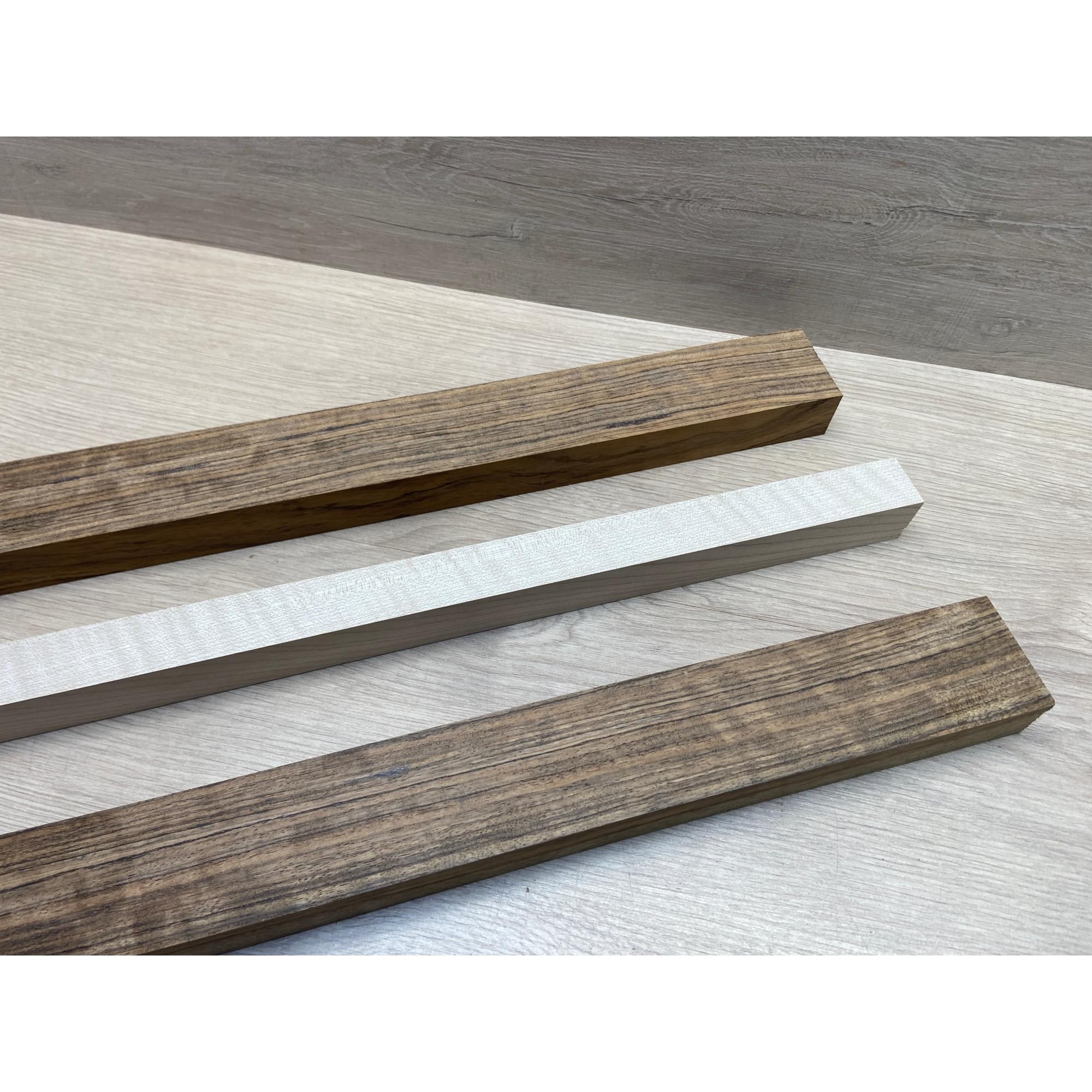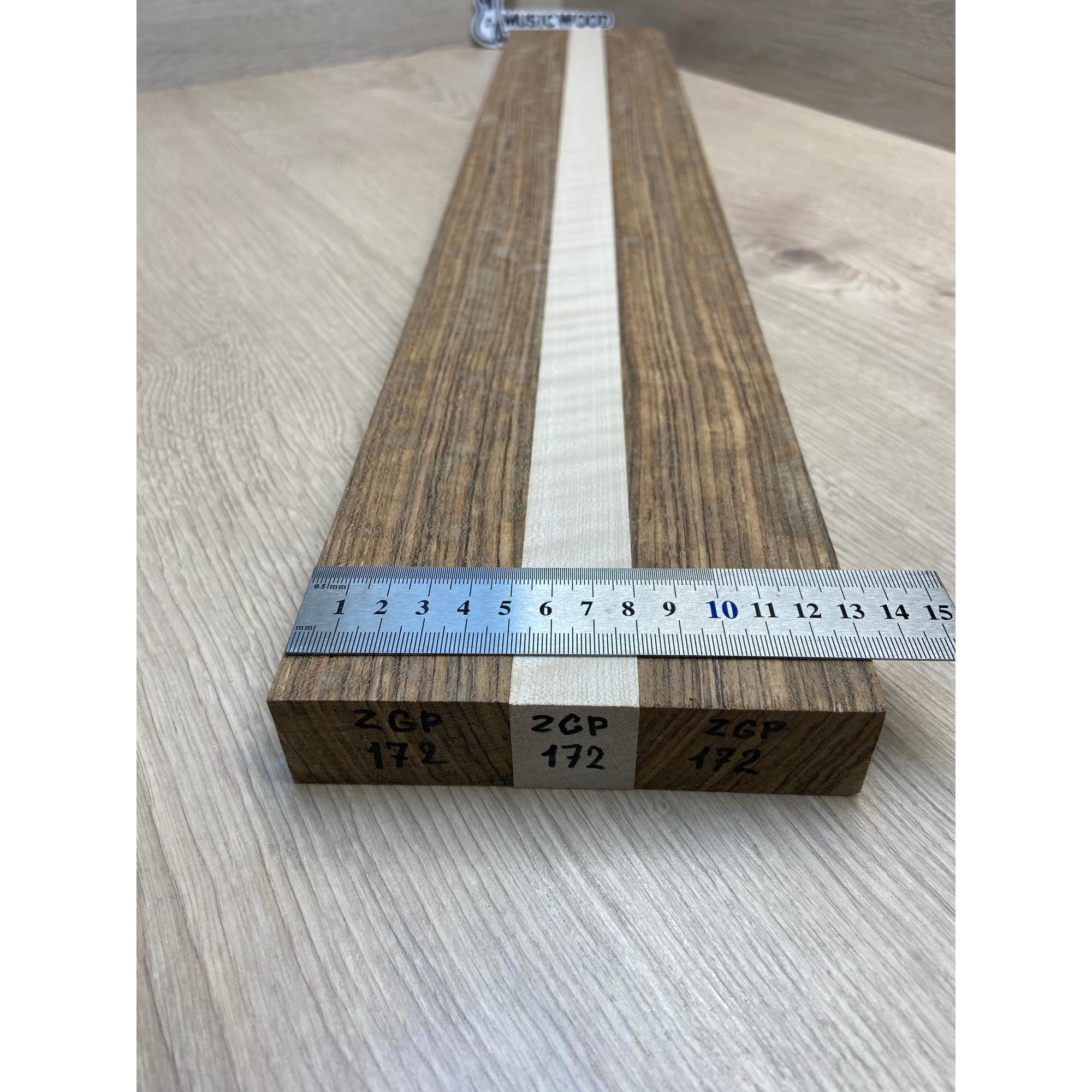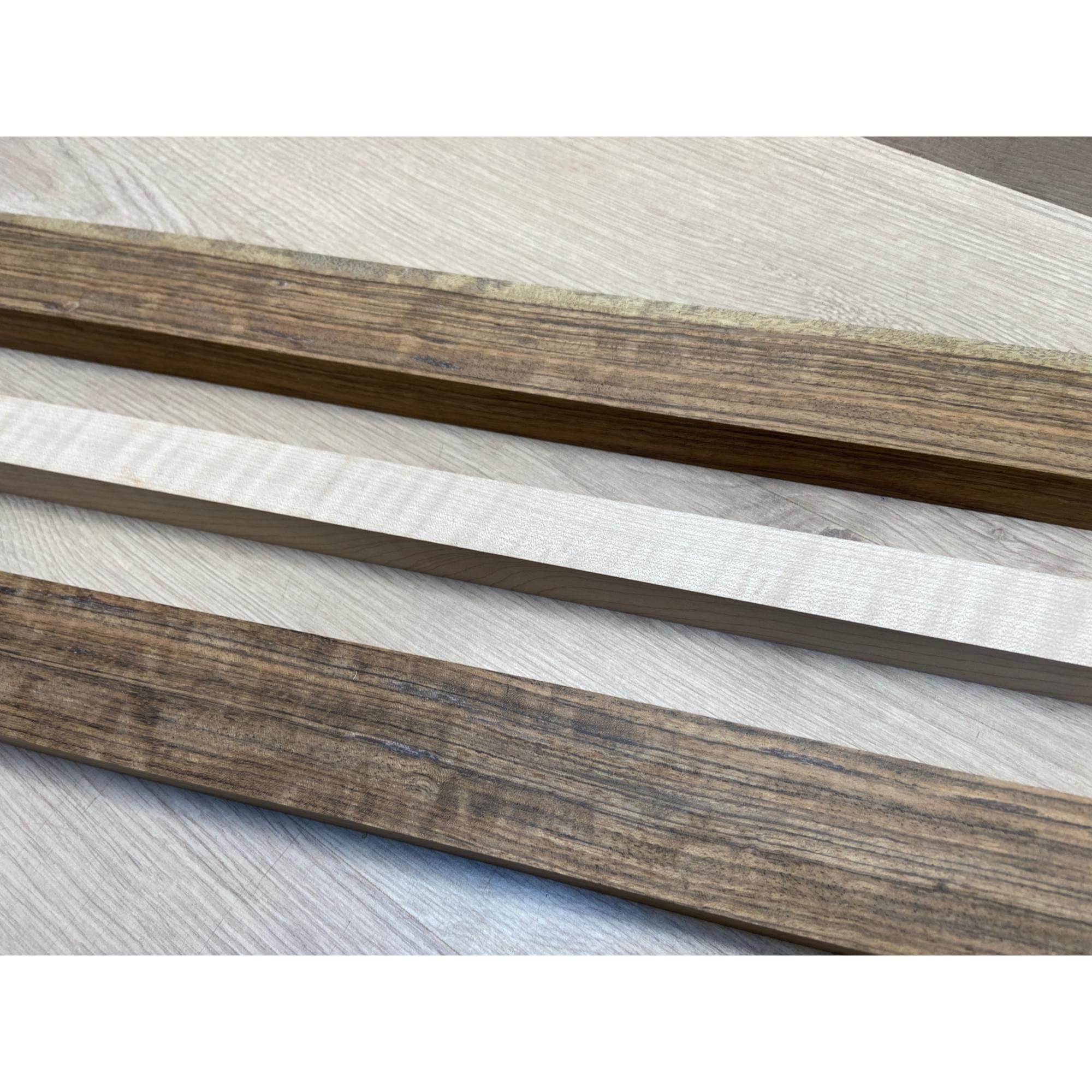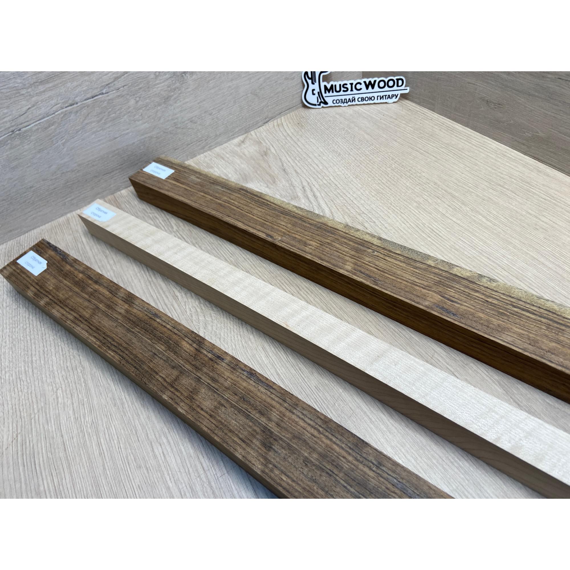 Овенгкол/Клён Белый Явор, Волнистый заготовка для переклеенного грифа электрогитары Радиал ААААА 29х(51-27-51)х725 мм - из 3х частей