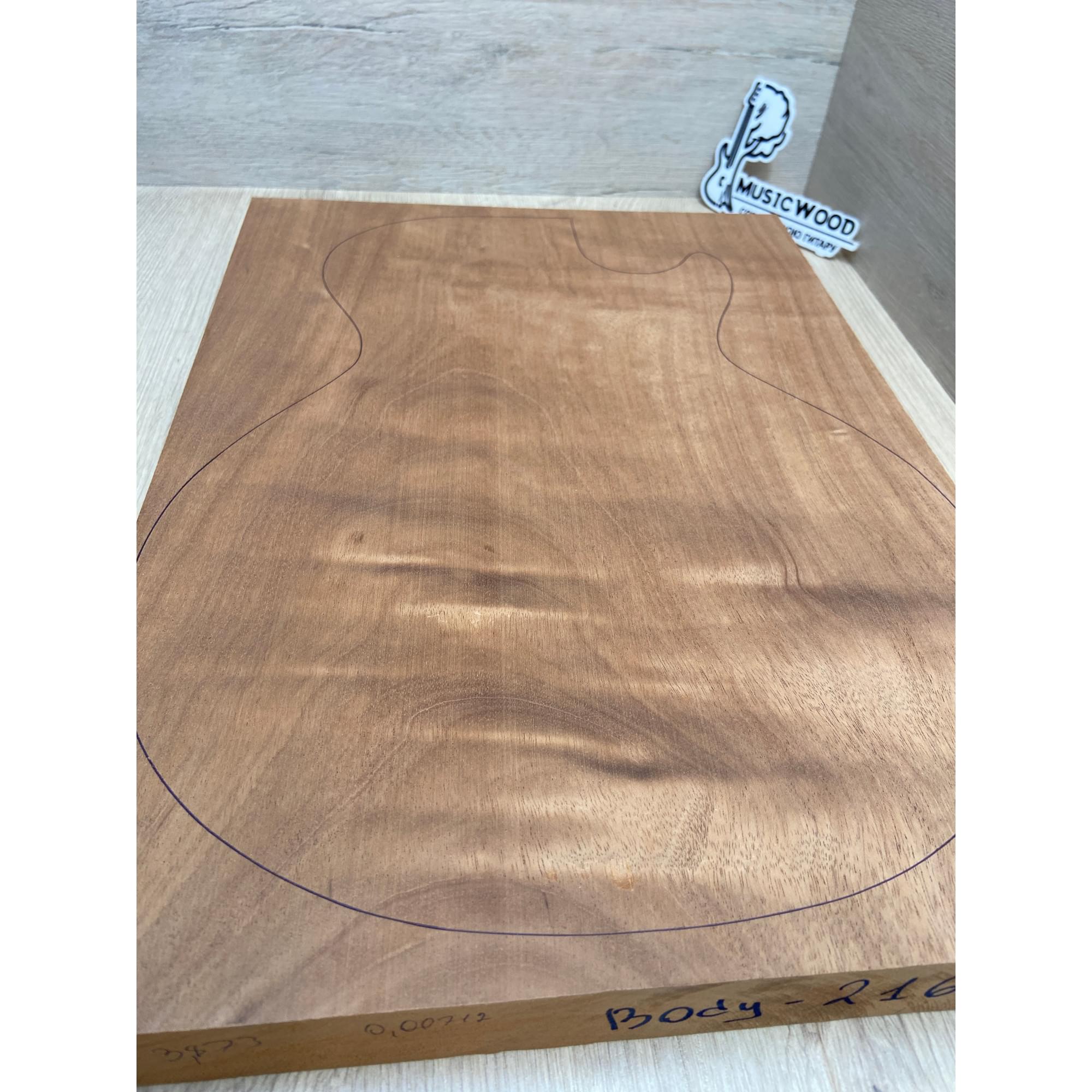 Махагон Африканский Кая заготовка корпуса Тангент АА 44х339х464 мм, 543 кг/м3 (массив)